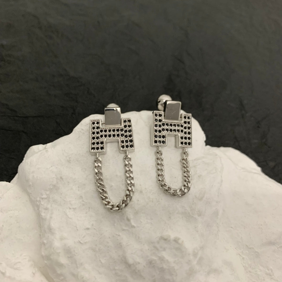 H STUD EARRINGS WITH SILVER DIAMONDS