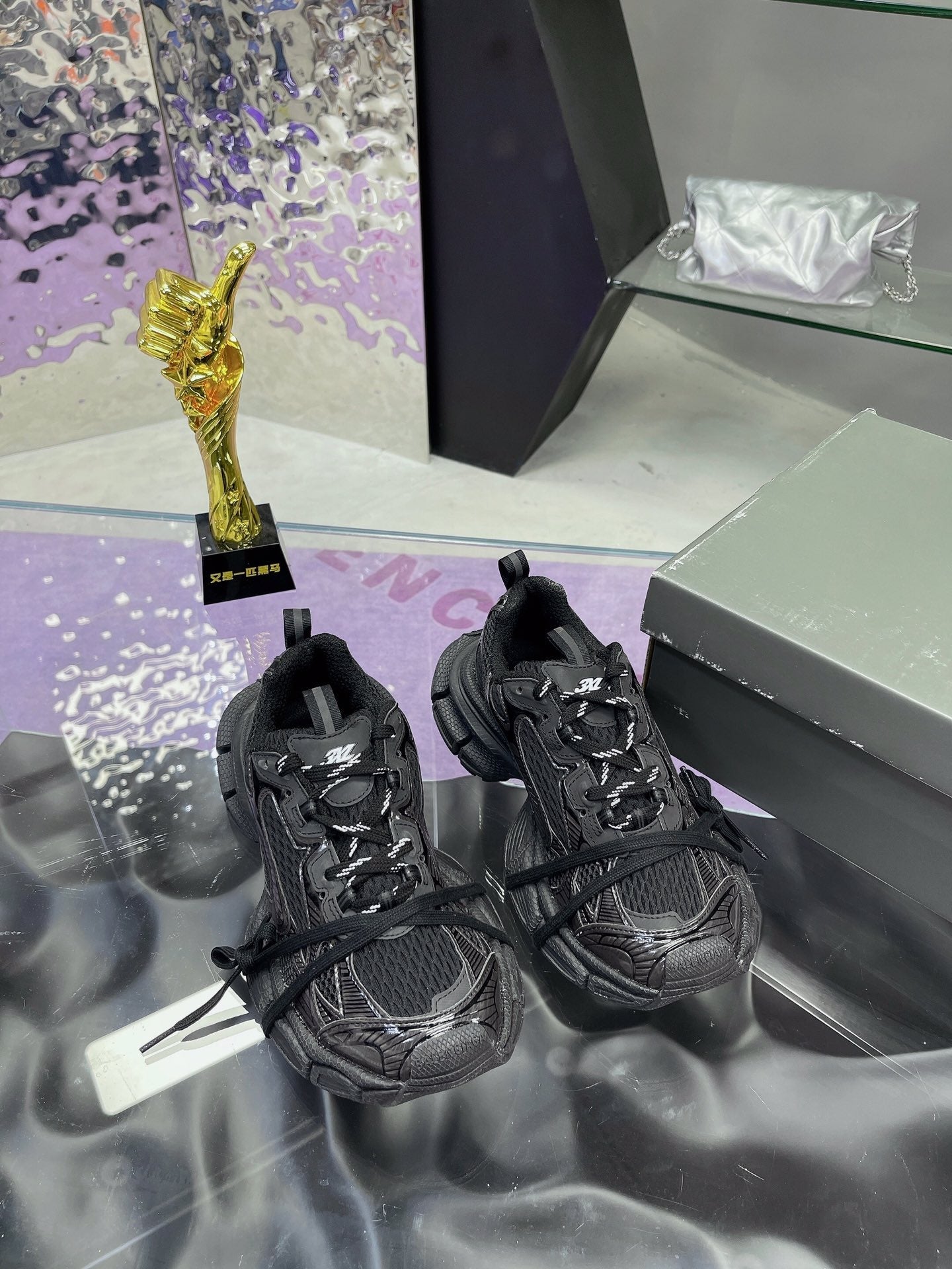 3XL SNEAKER IN BLACK MESH AND POLYURETHANE