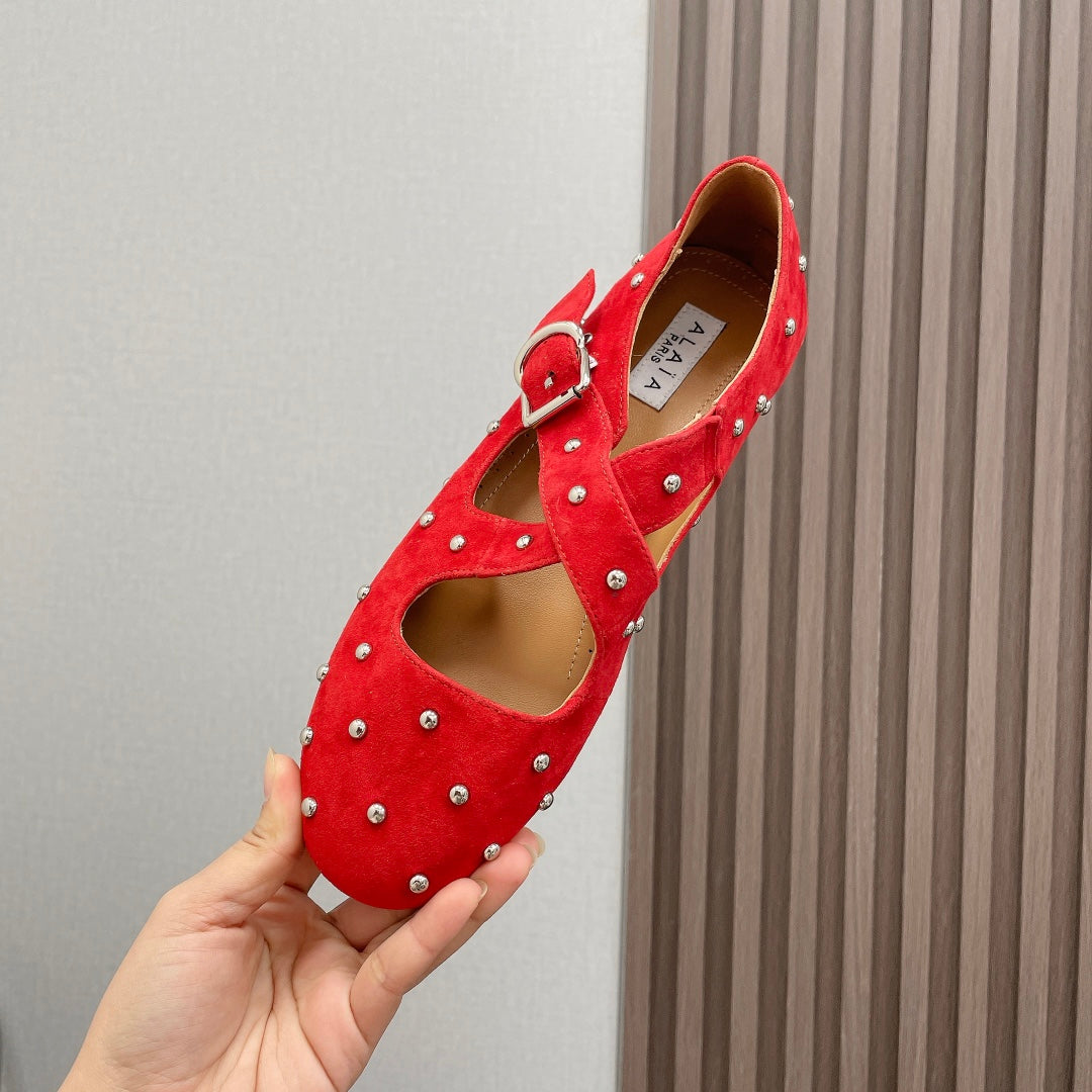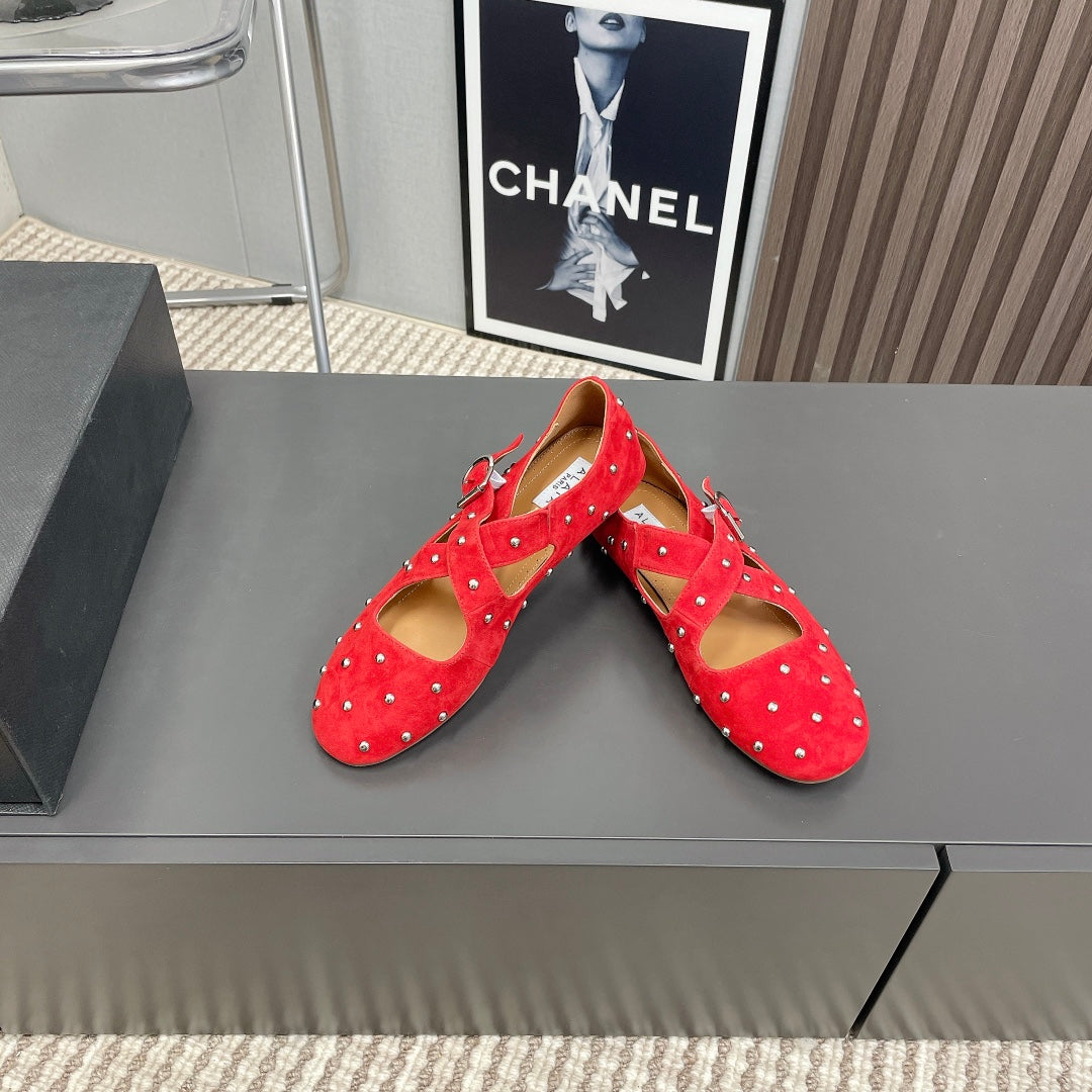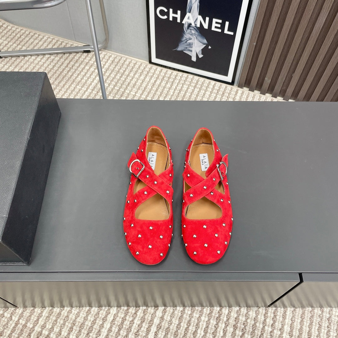 Alaia 2025 Criss Cross With Stud Ballet Flats Red Suede 293214