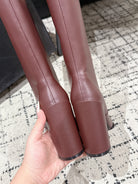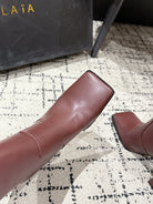 Alaia 2025 Square Toe High Heeled Boot Burgundy Calfskin 558670