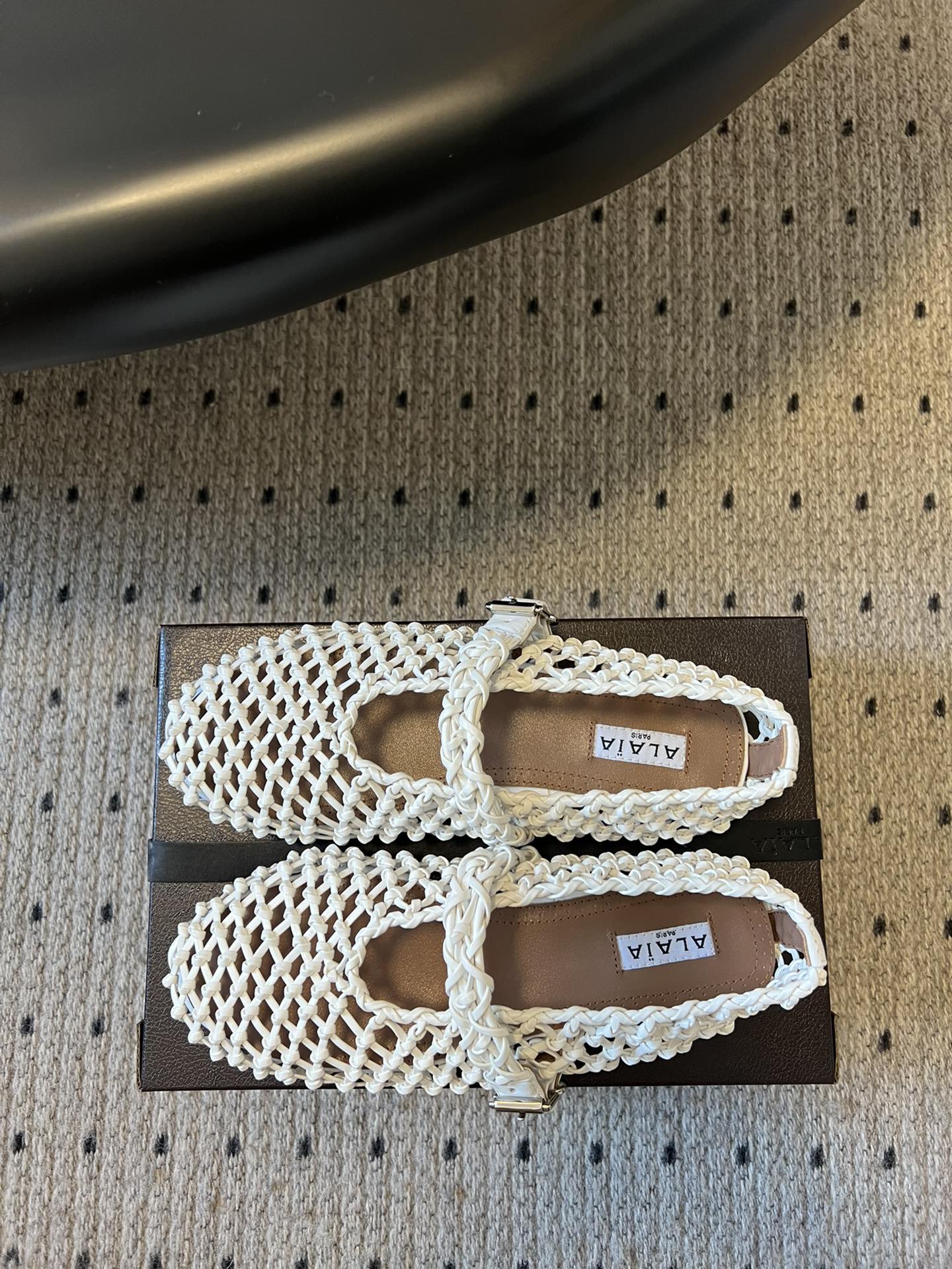 Alaia 25 Braided Ballet Flats White Cowhide 303676