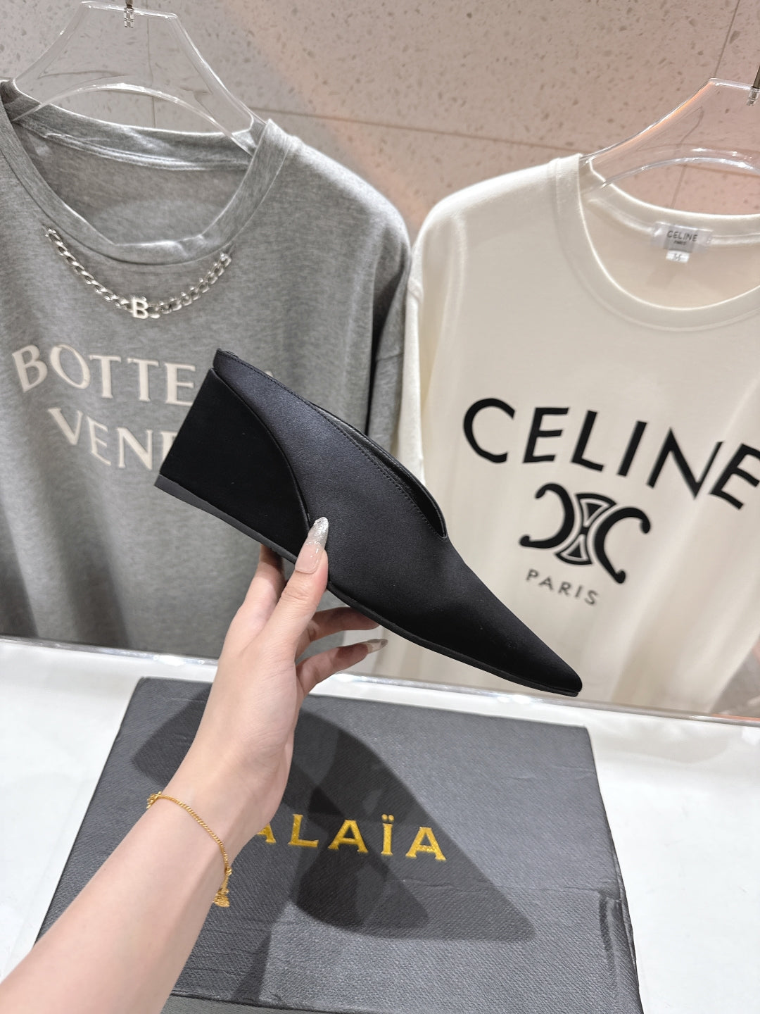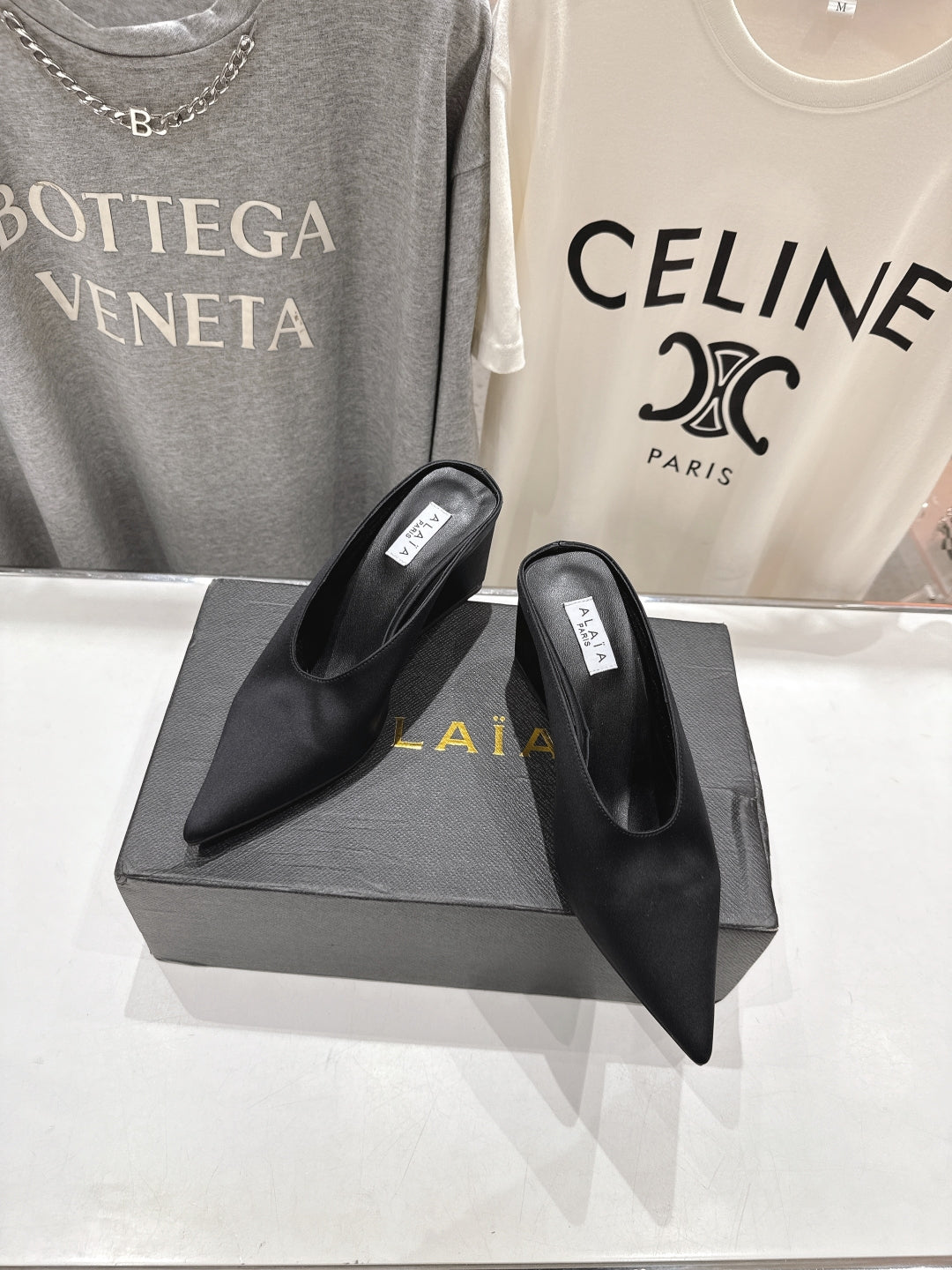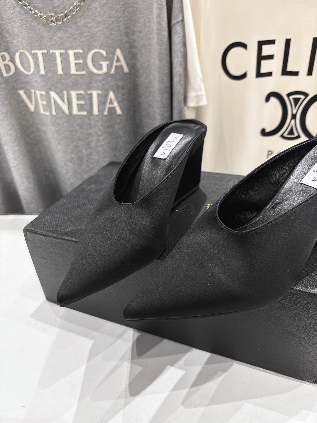 Alaia 25 Cube Wedge Mules Black Silk Sheepskin 300084