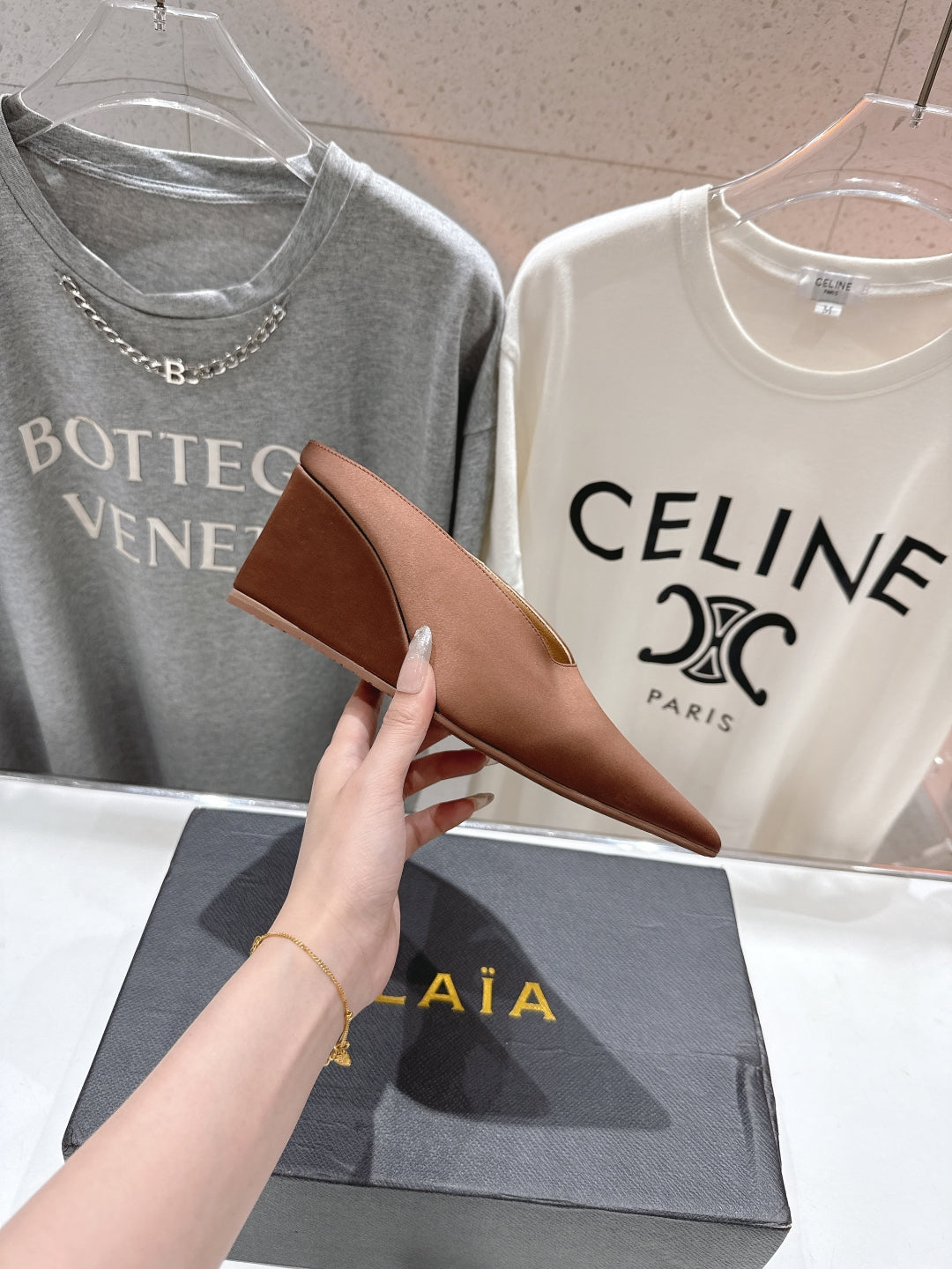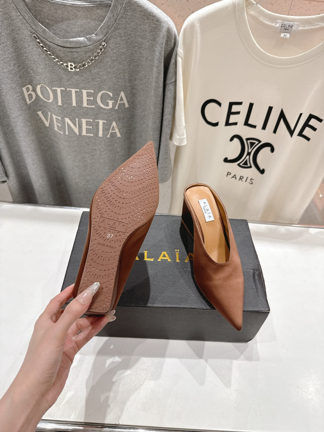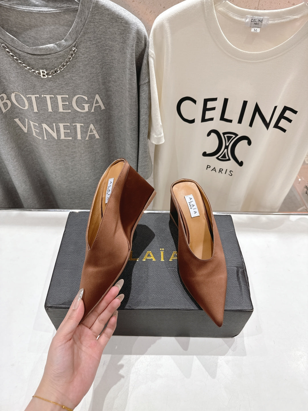 Alaia 25 Cube Wedge Mules Brown Silk Sheepskin 300083