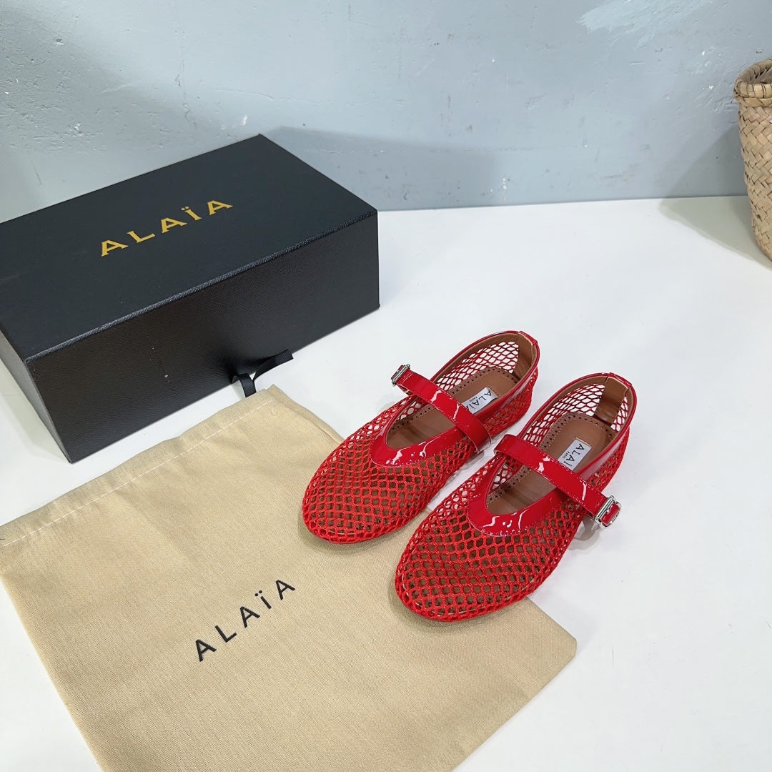 Alaia 25 Laminated Fishnet Ballet Flats Red Lambskin 576443