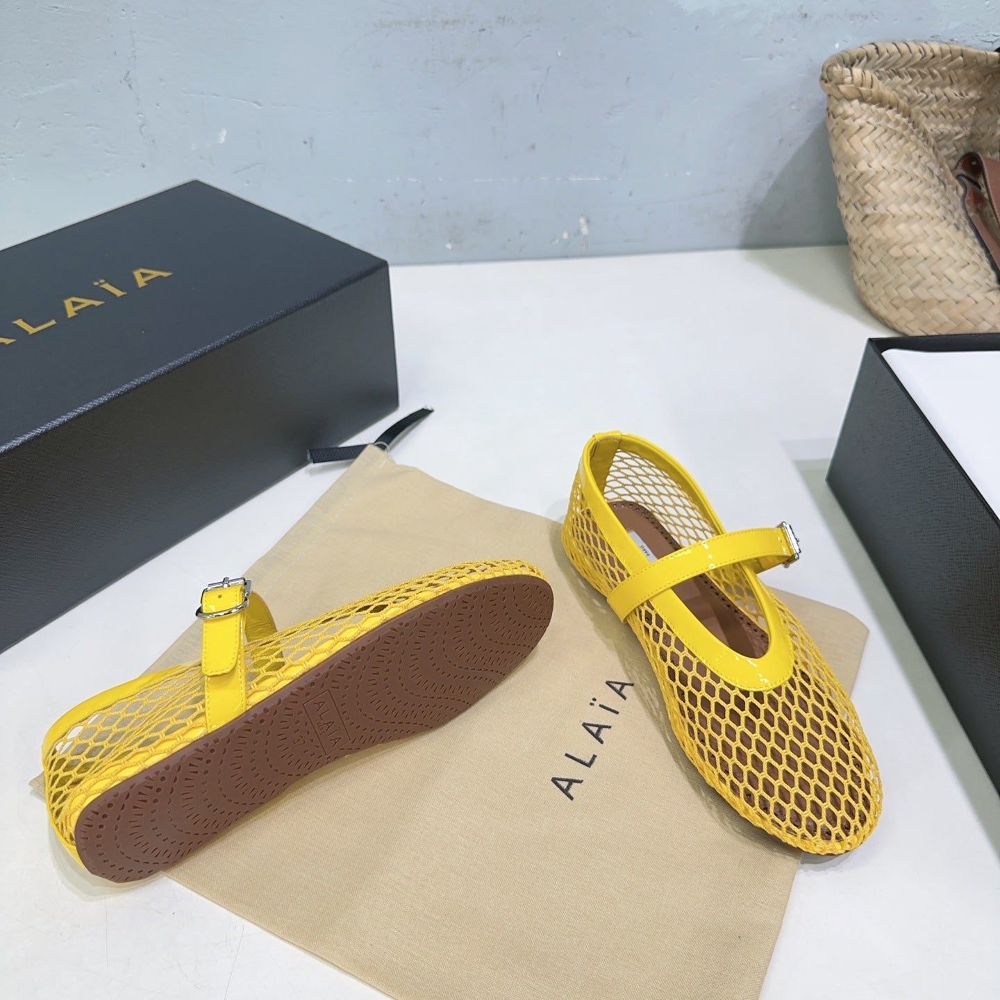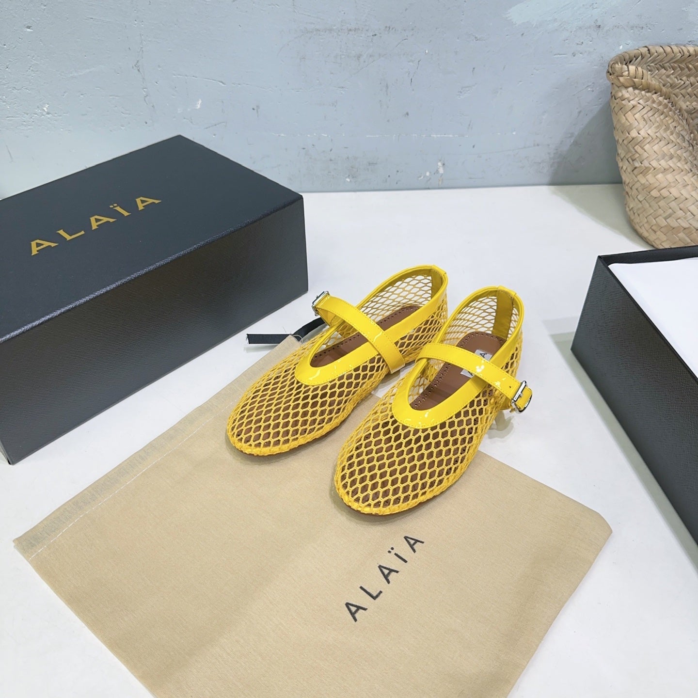 Alaia 25 Laminated Fishnet Ballet Flats Yellow Lambskin 300470