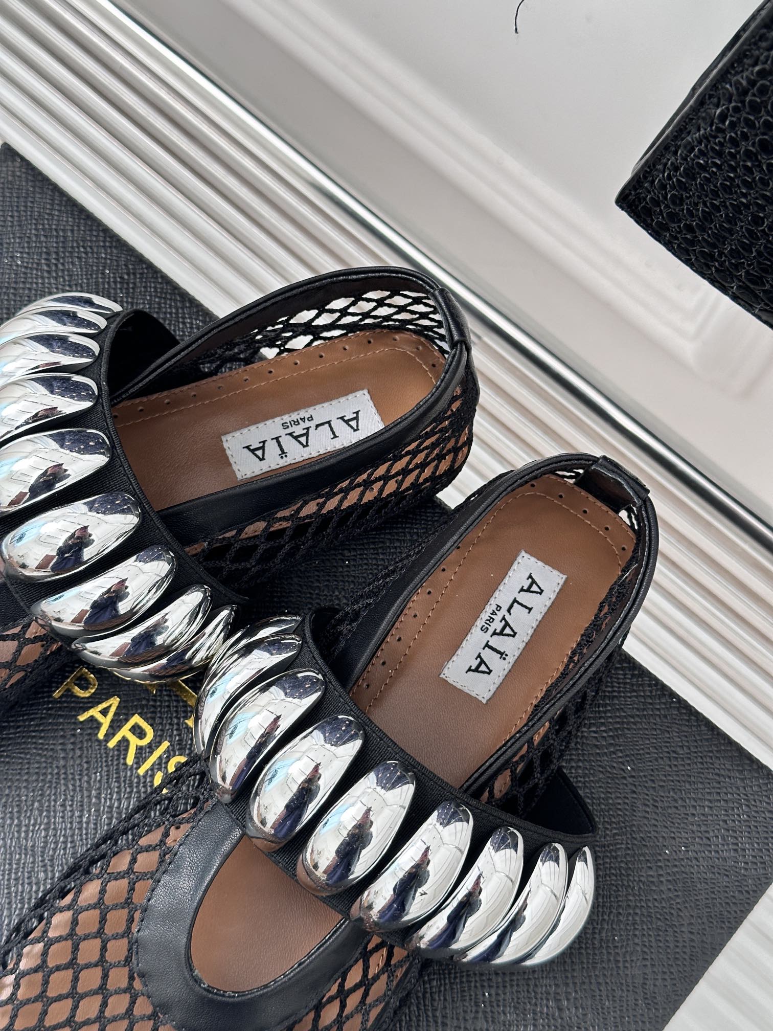 Alaia 25 Mary Jane Mesh Ballet Flats Black Calfskin 293248