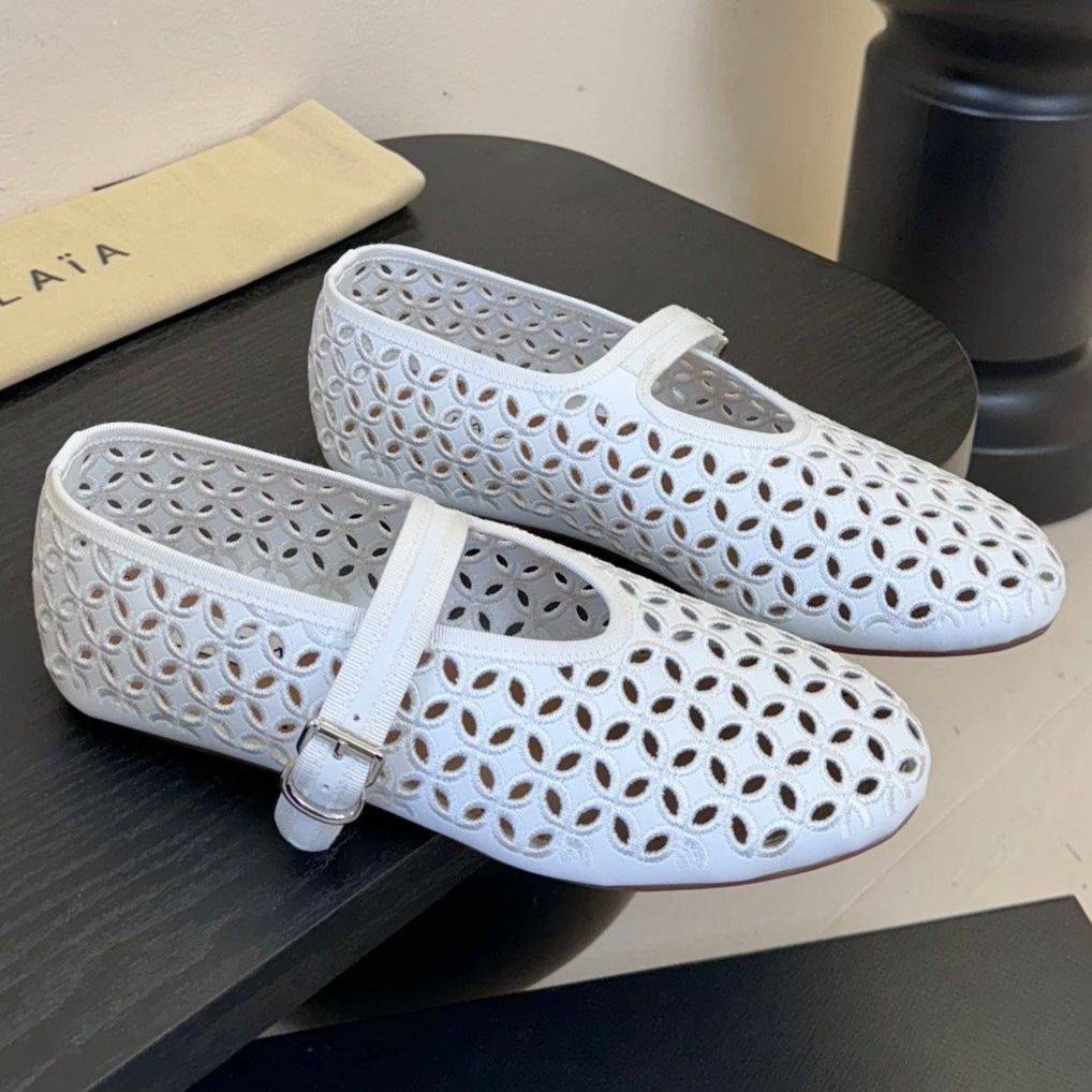 Alaia 25 Mary Jane Mesh Ballet Flats White Calfskin 297033