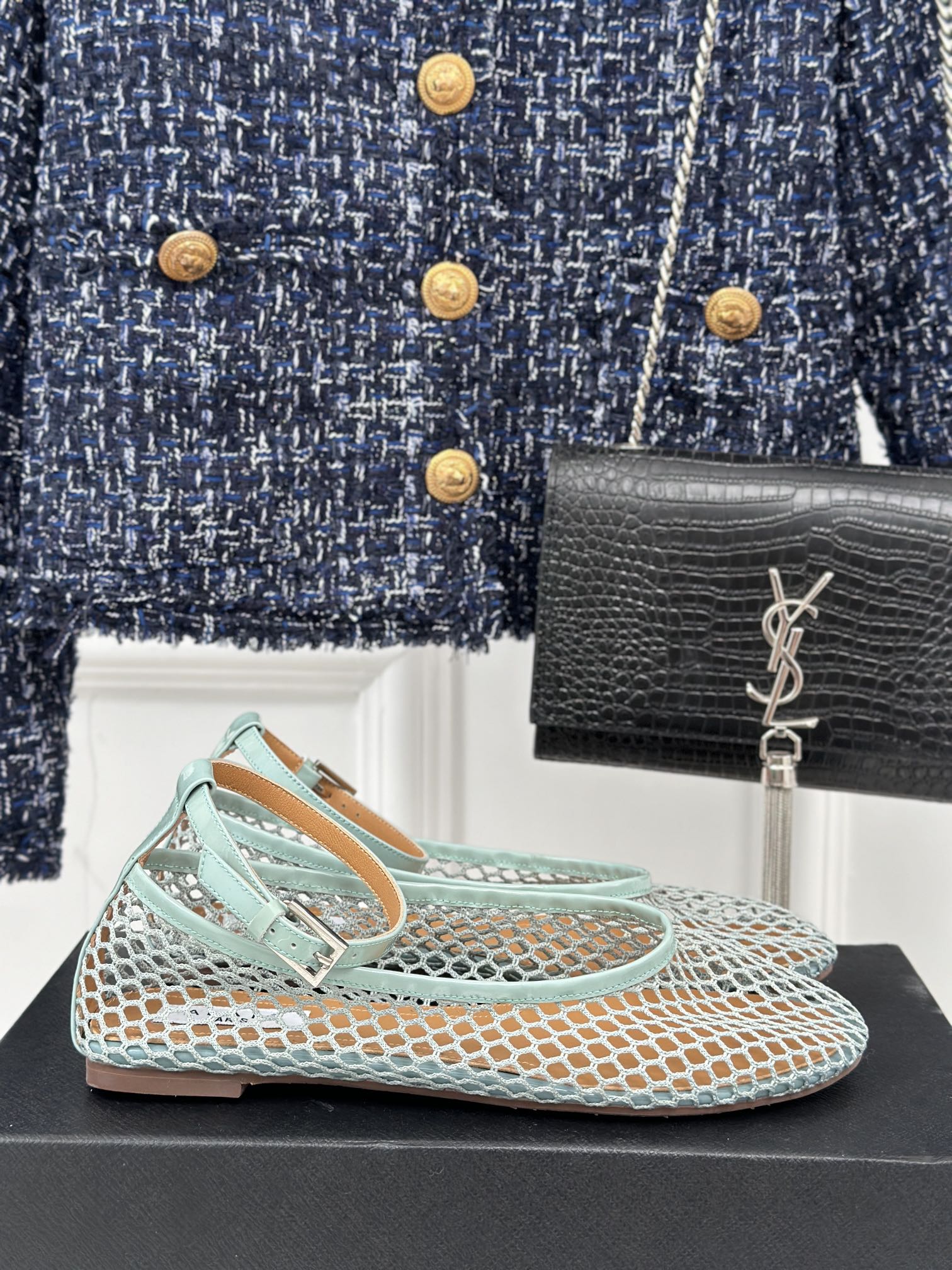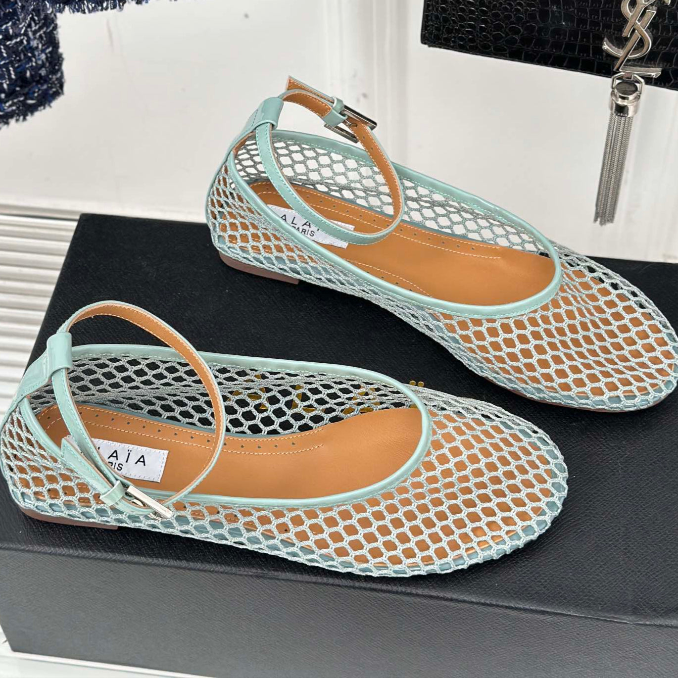Alaia Mary Jane Ballet Flat Lagoon Green Lambskin293234