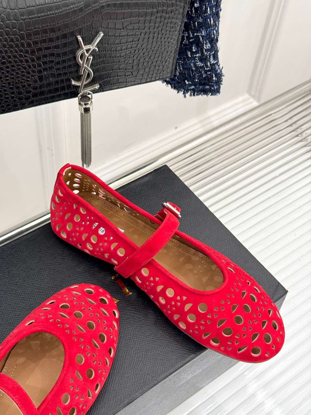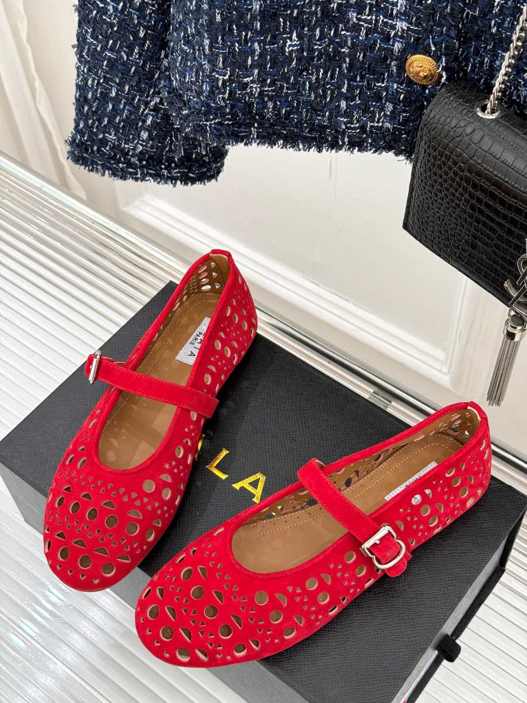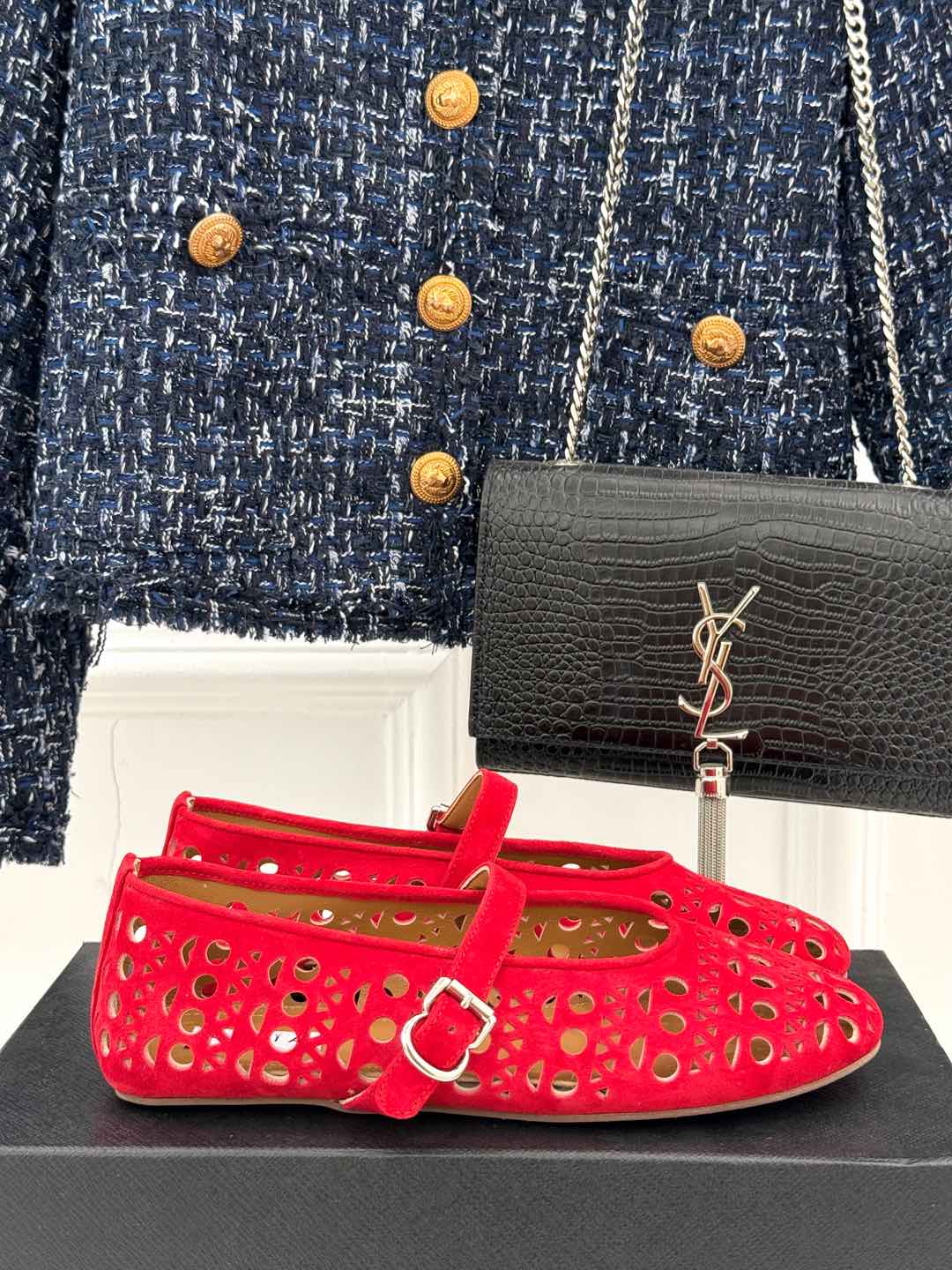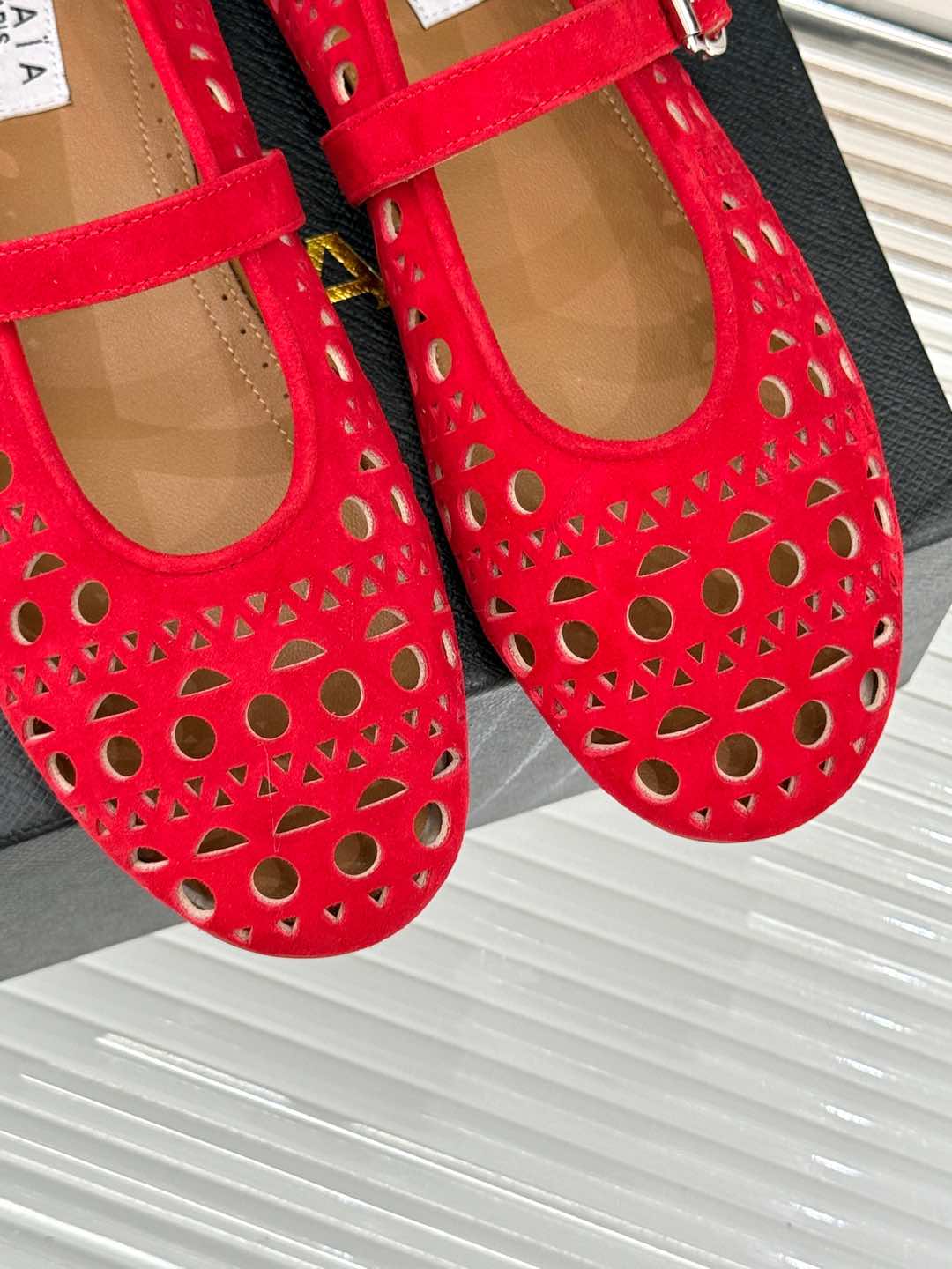Alaia Women's Ballet Flat Red Suede 293225