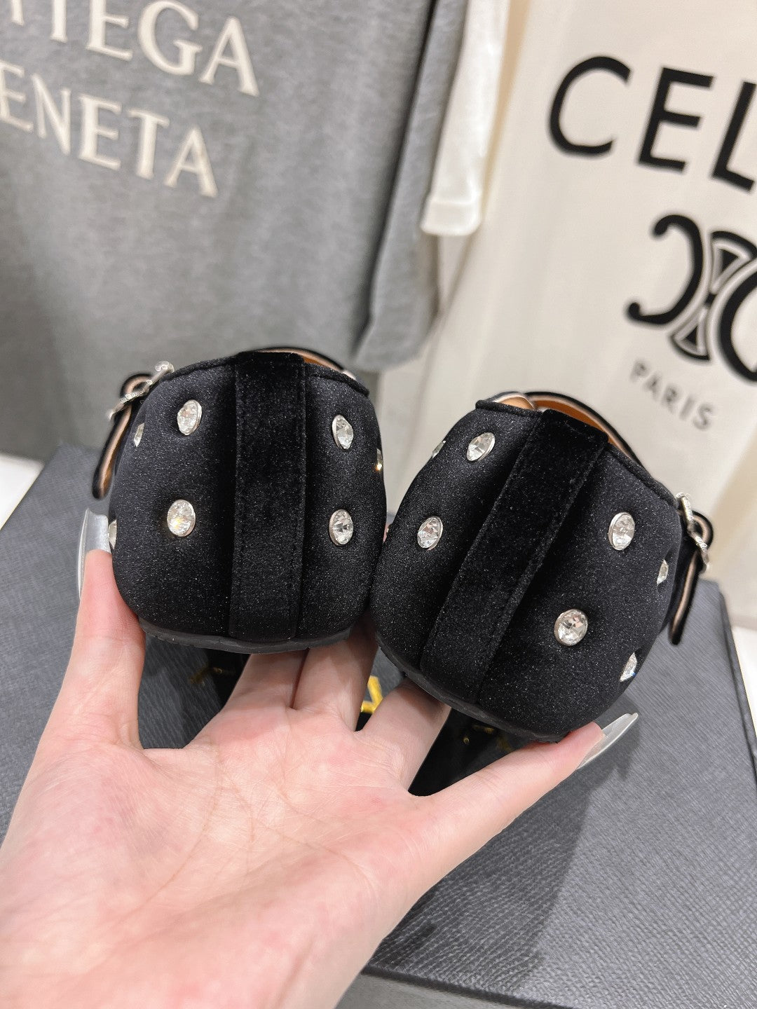 • Material: Velvet With Rhinestones, Lambskin