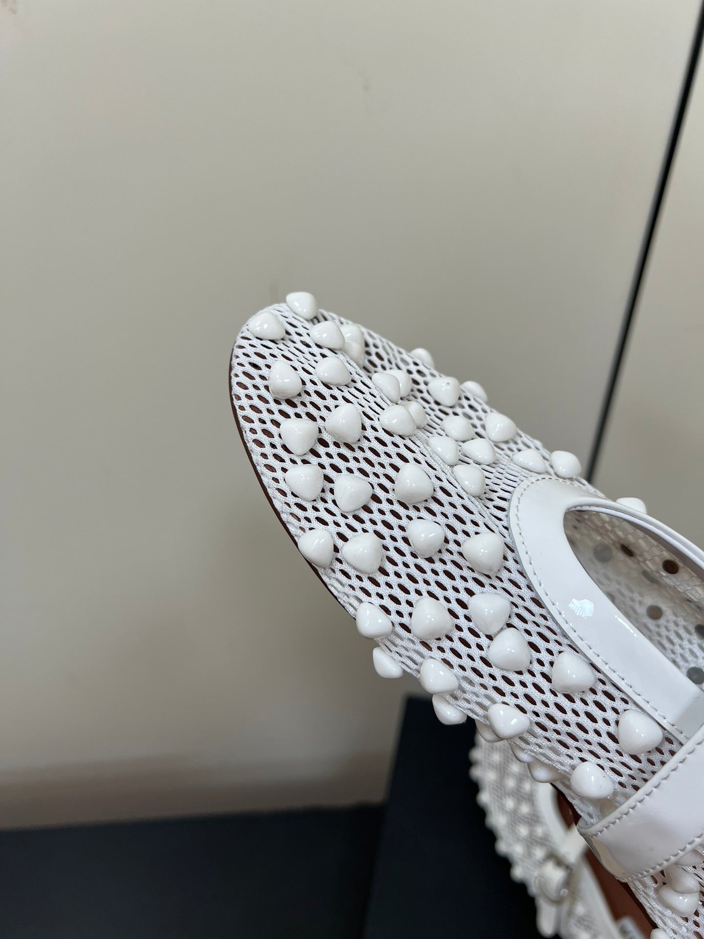 Alaila Ballet Flats With Studs On Fishnet In White 975751