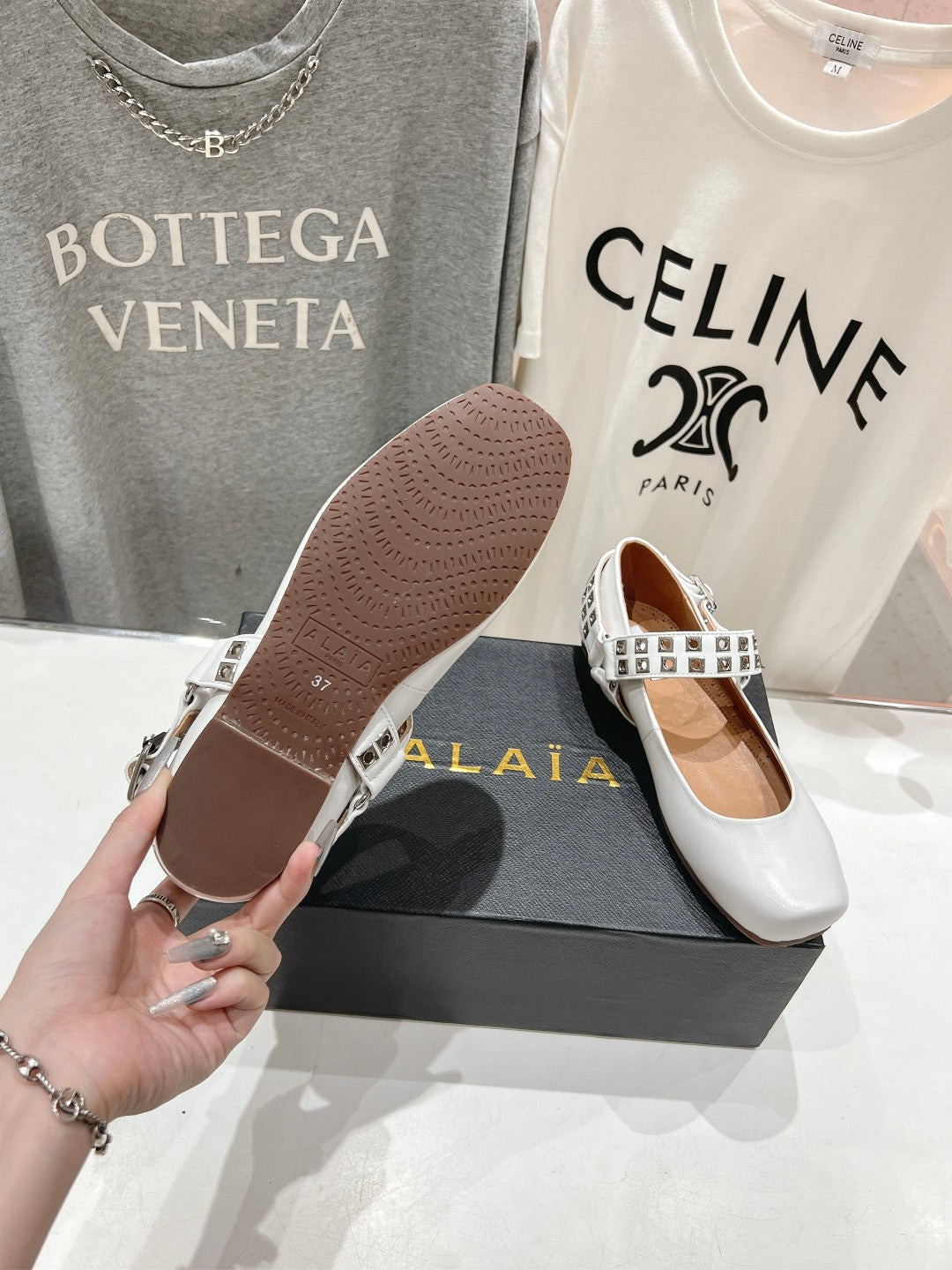 Alaila Biker Ballet Flats In White Cowhide 911438