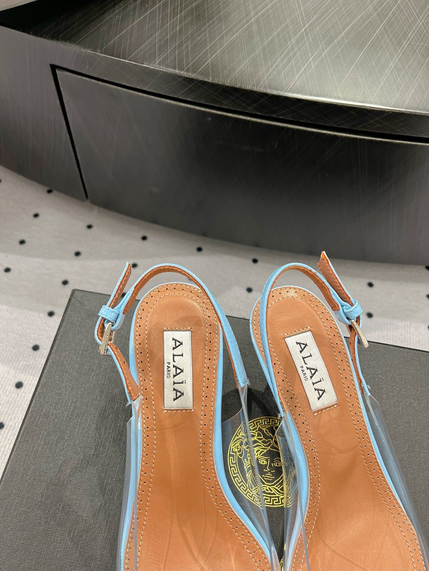 Alaila Le Cœur Slingbacks 60mm In Could Blue Glossy Lambskin 954835