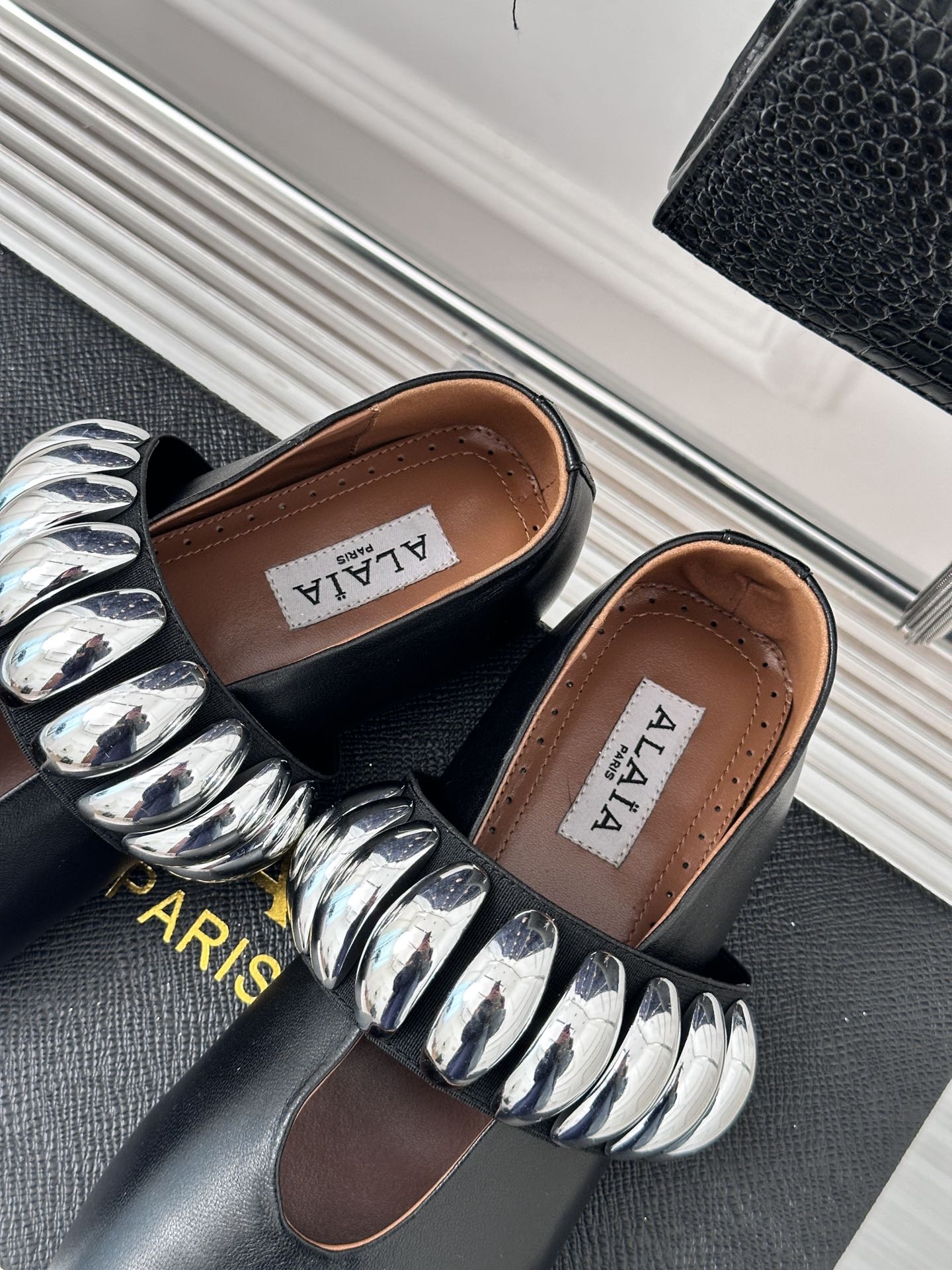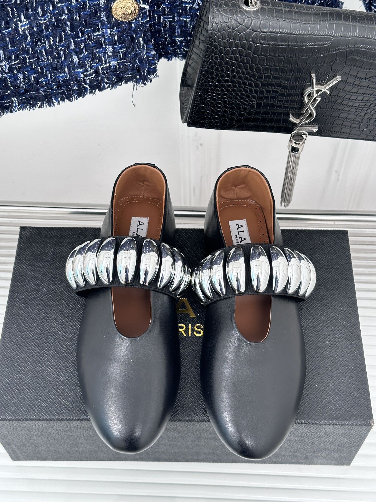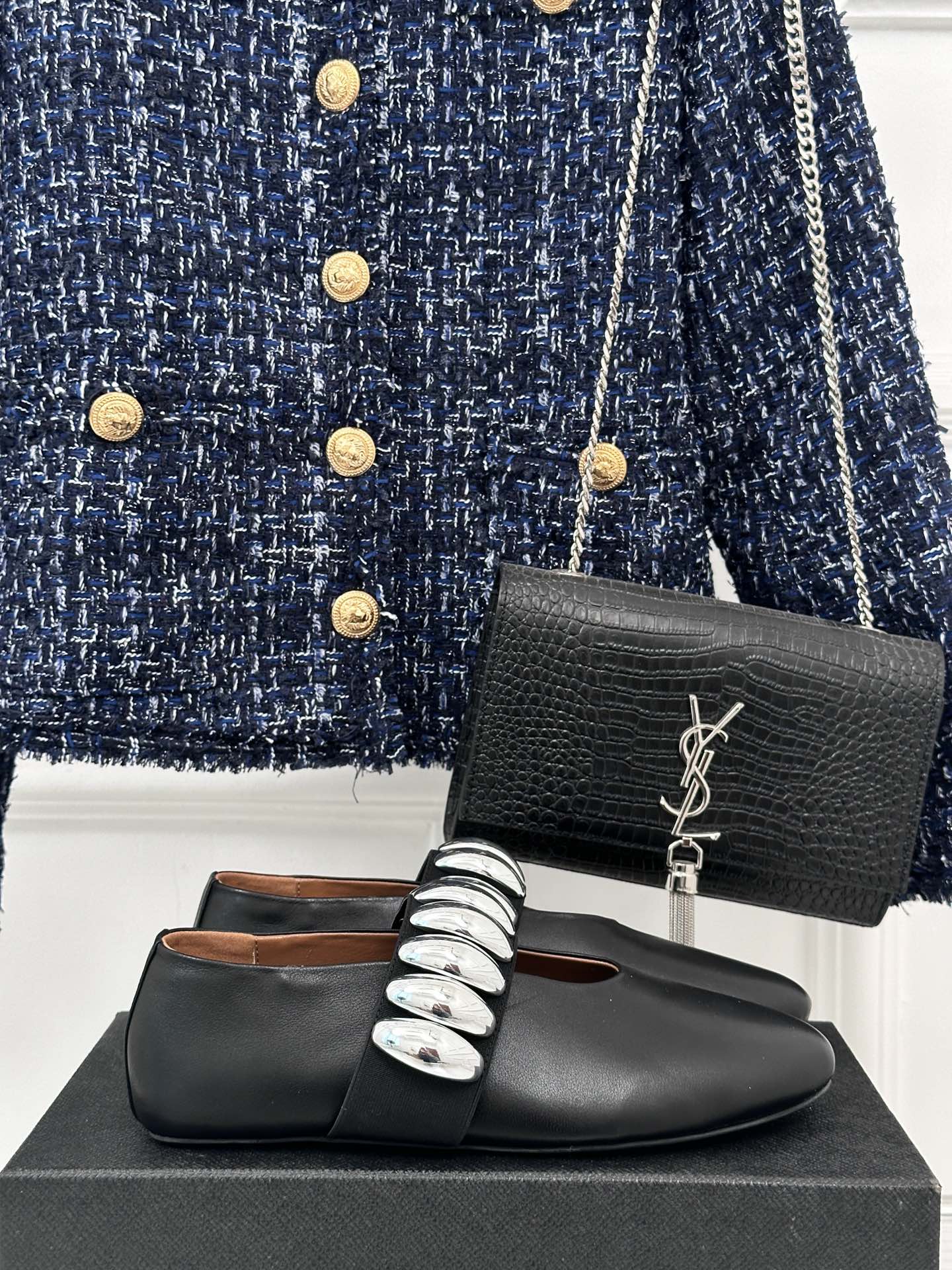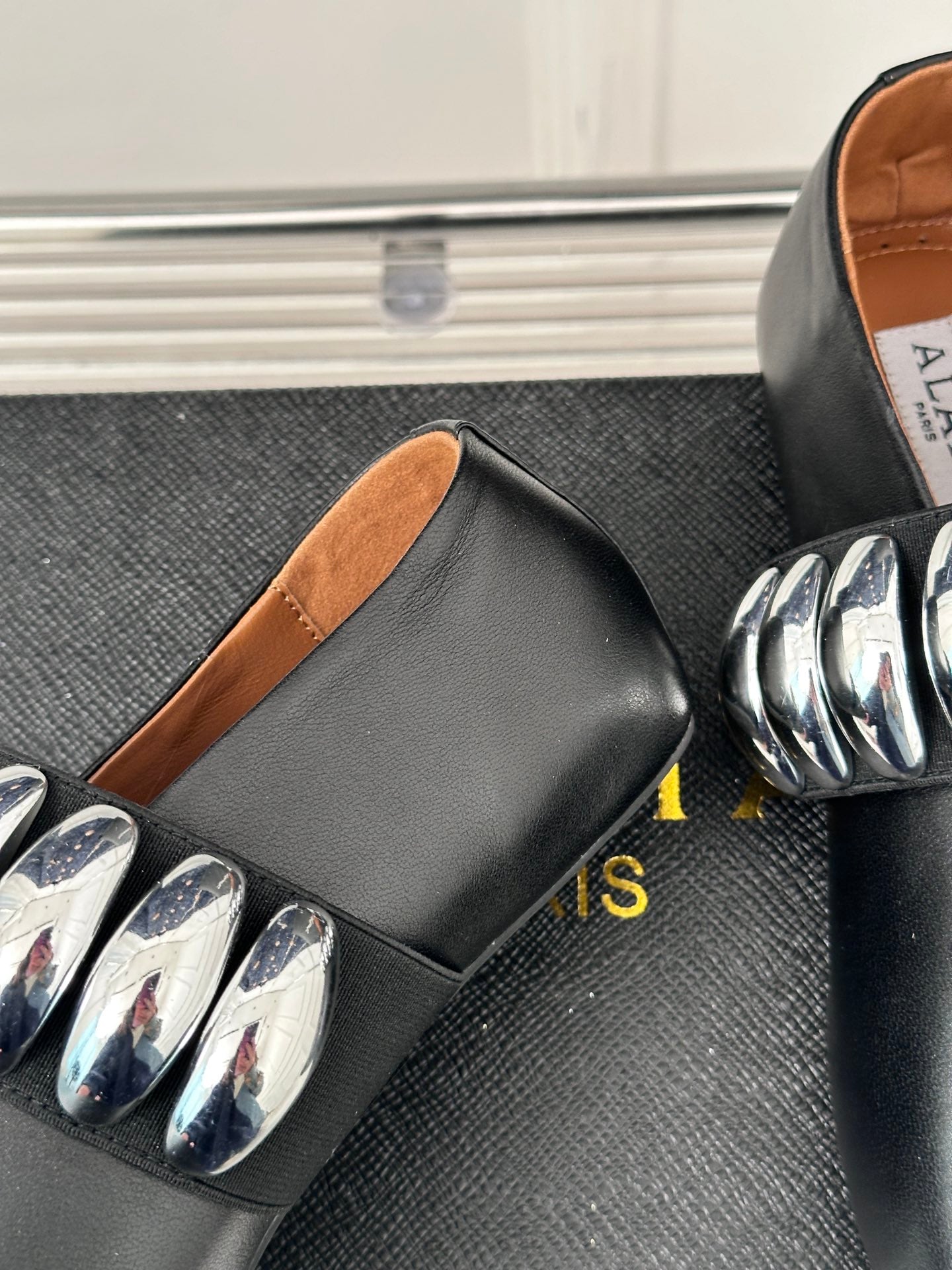 ballet flat silver jewel black lambskin