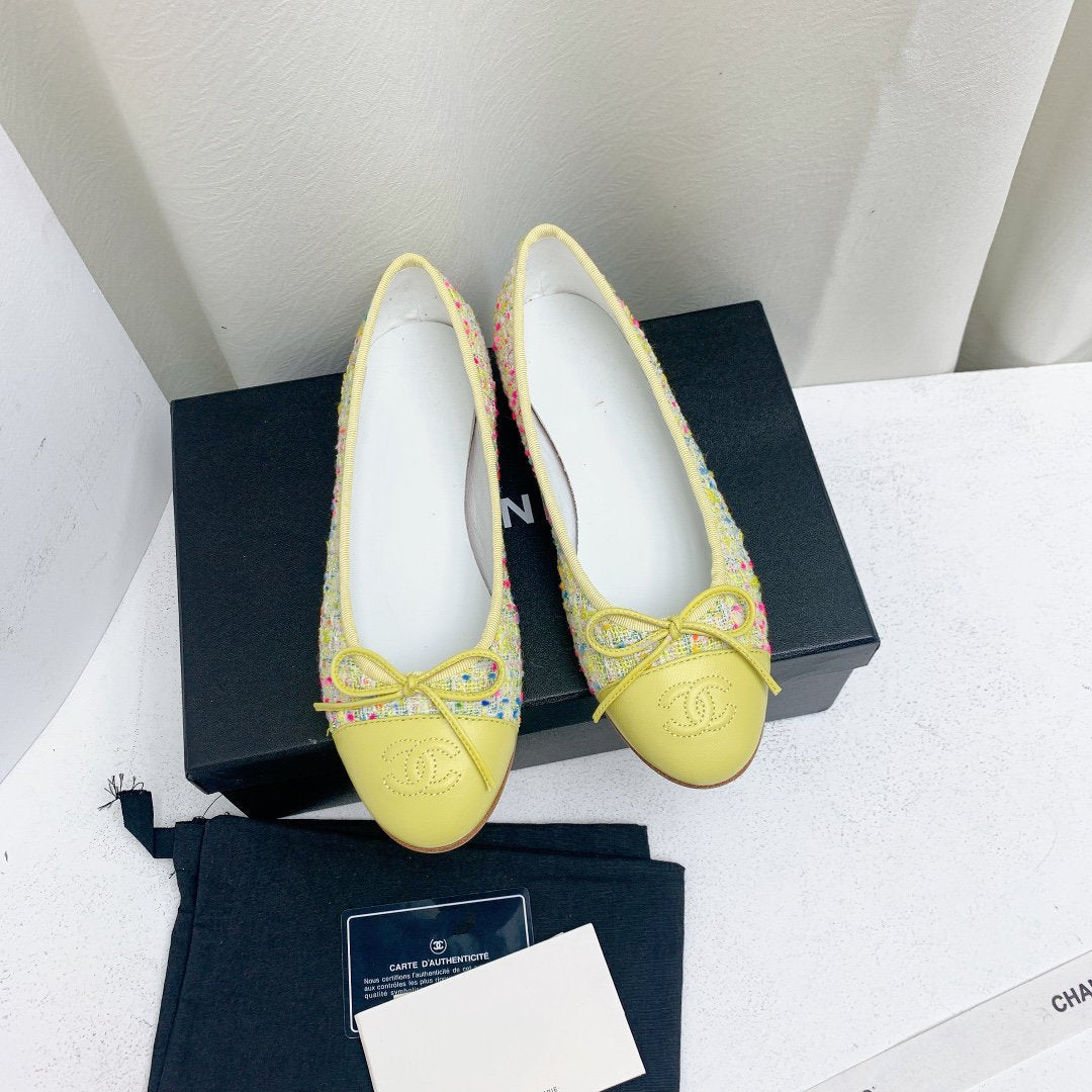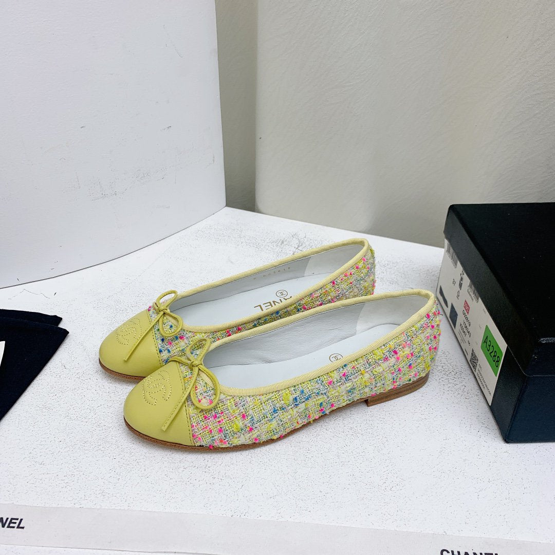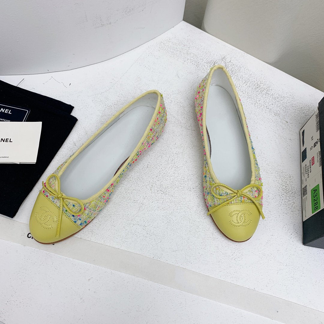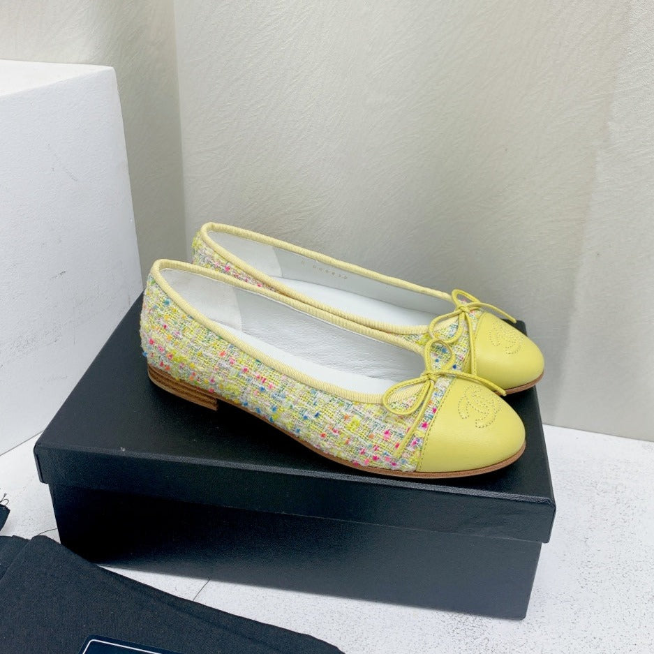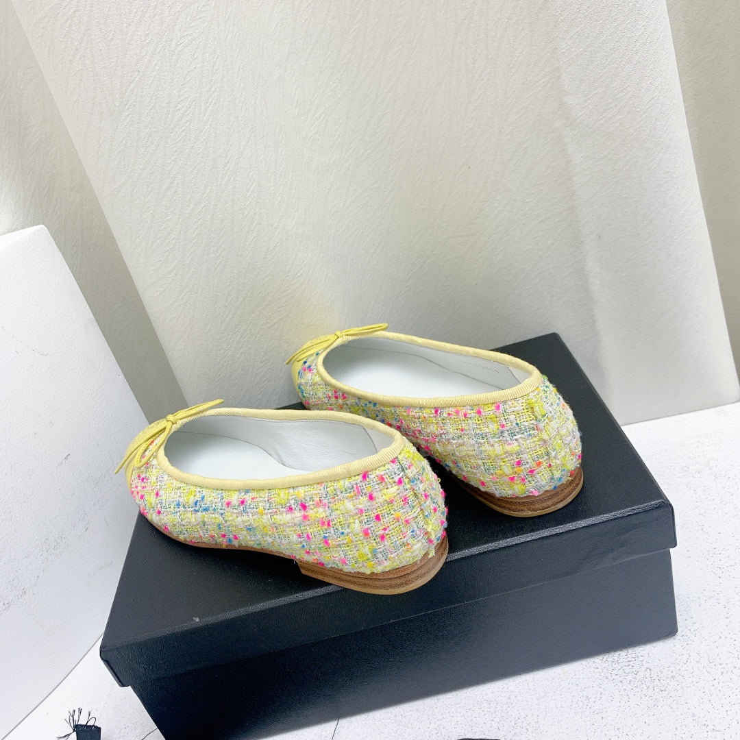 ballet flat yellow red blue tweed grosgrain