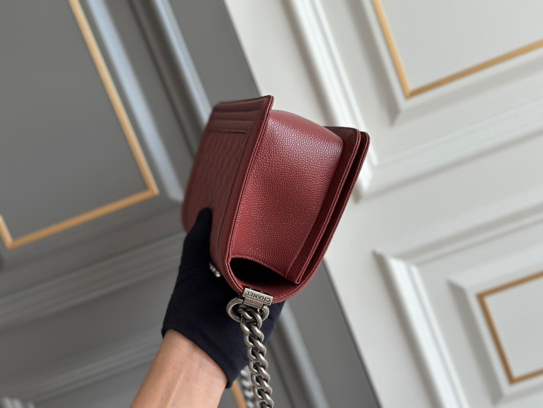 boy medium 25 wine quilted caviar ruthenium hardware