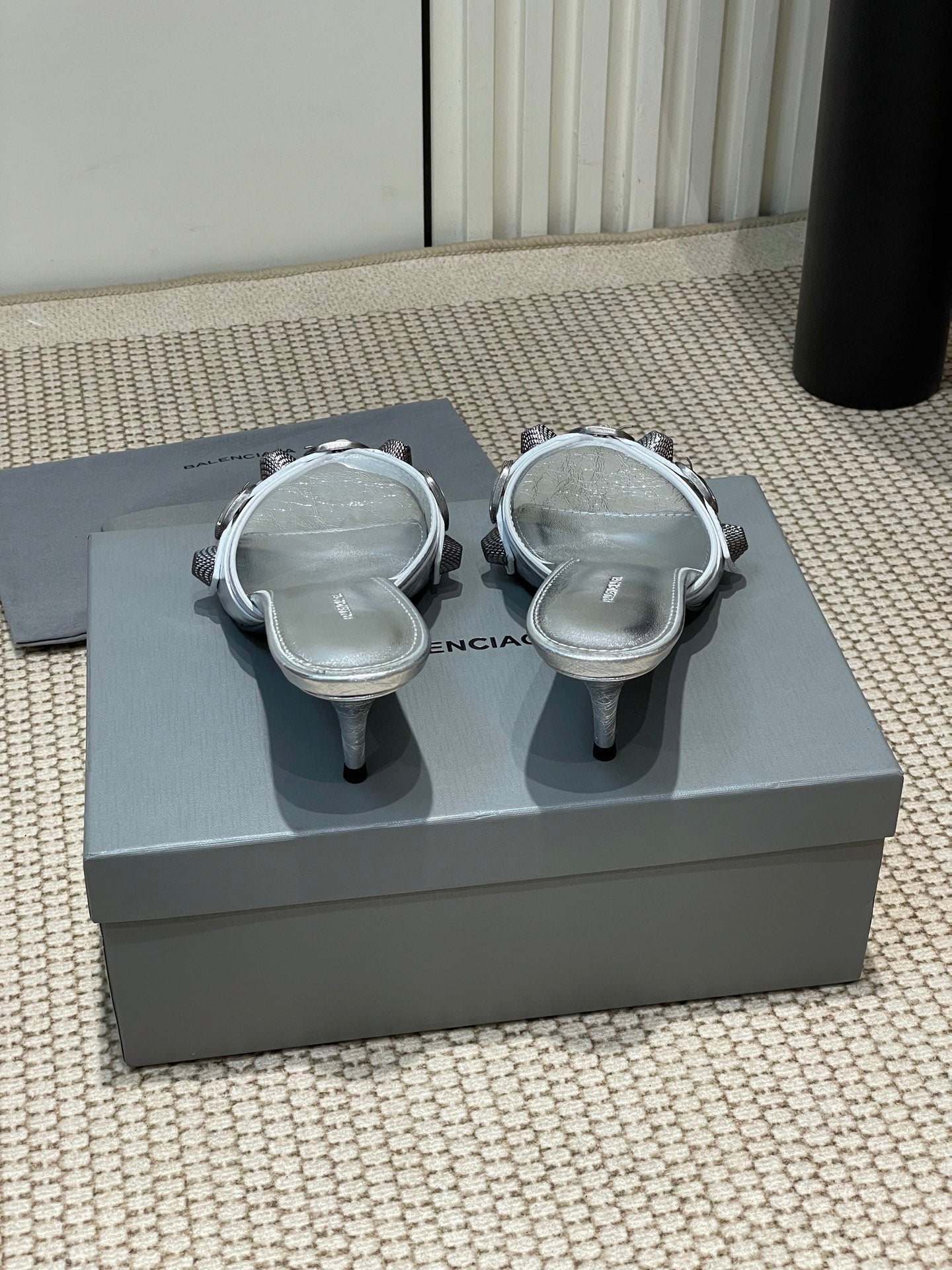 CAGOLE HIGH MULES IN SILVER OIL-WAX SHEEPSKIN