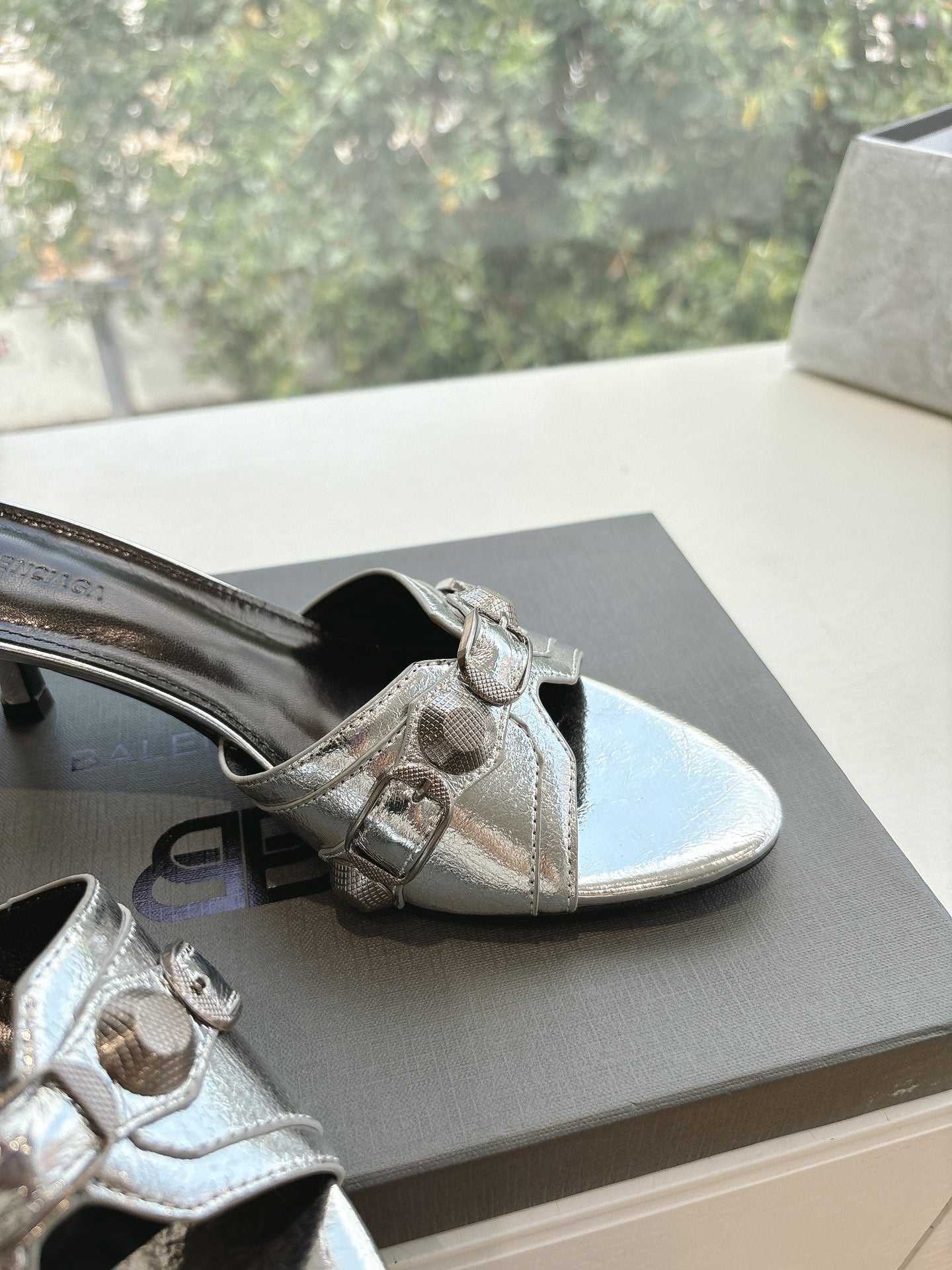 CAGOLE MID-HEEL MULES IN SILVER METALLIC CALFSKIN