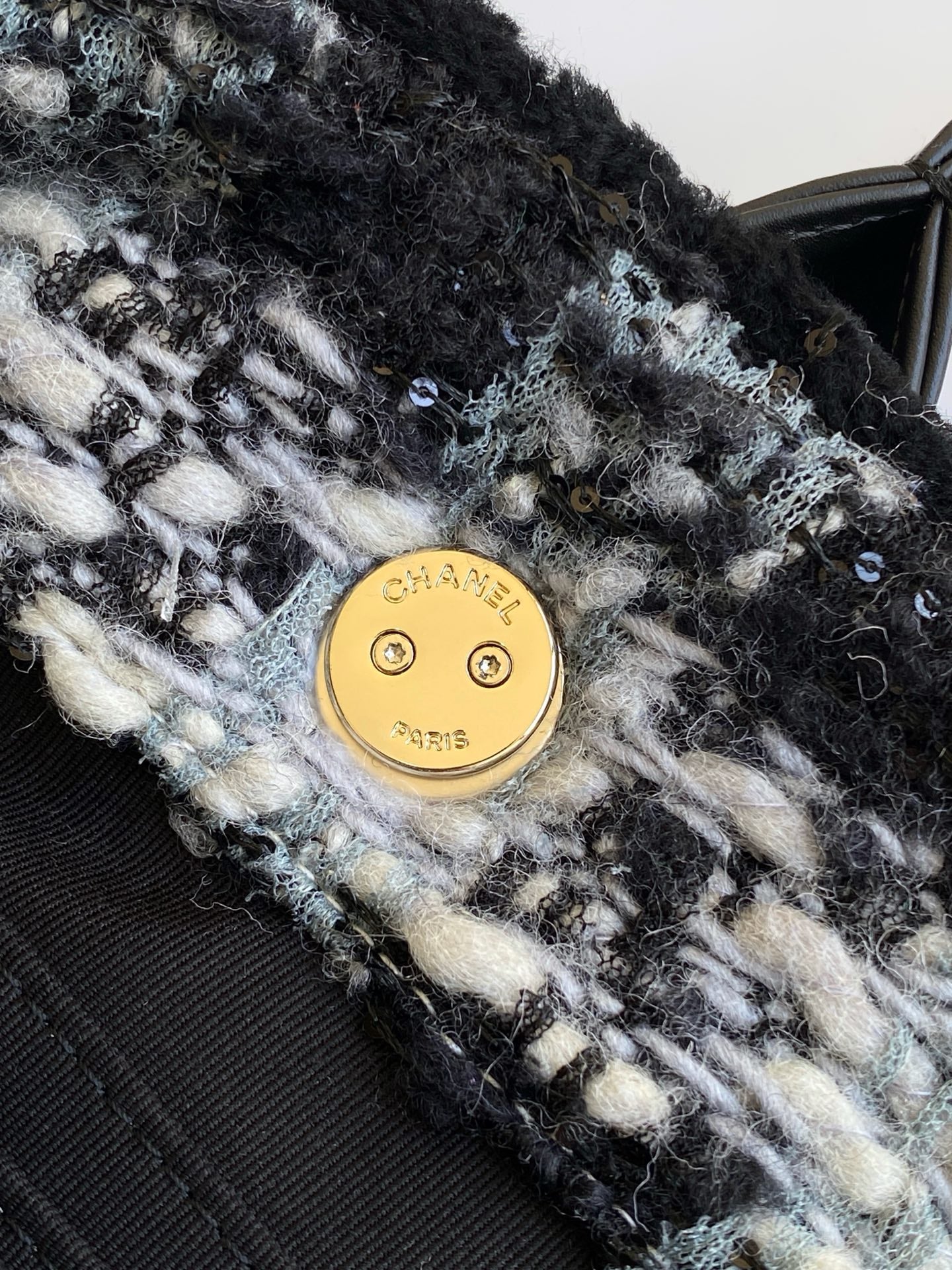 CC 2025 Bag Black Tweed Fabric Leather