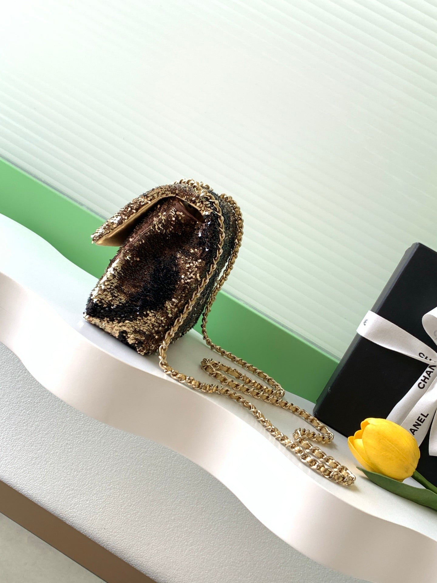 CC 2025 Flap Bag Brown Gold Sequin 298199