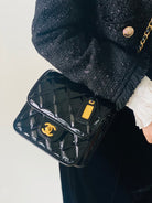 CC 2025 Medium Flap Bag Black Patent Calfskin