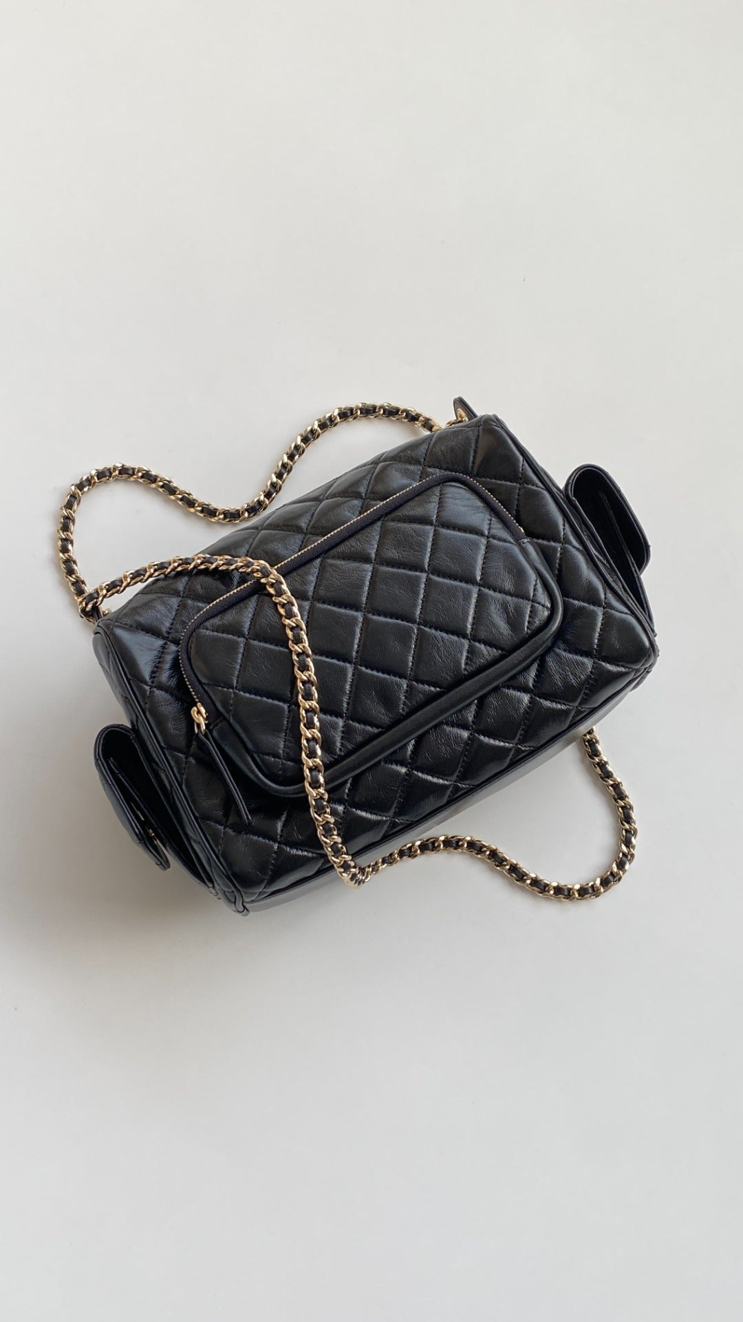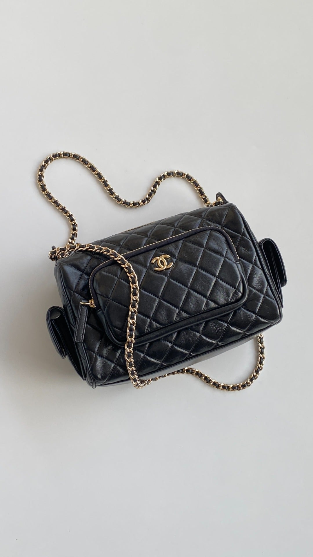 CC 2025 Multi-Pockets Camera Case Bag Black Calfskin