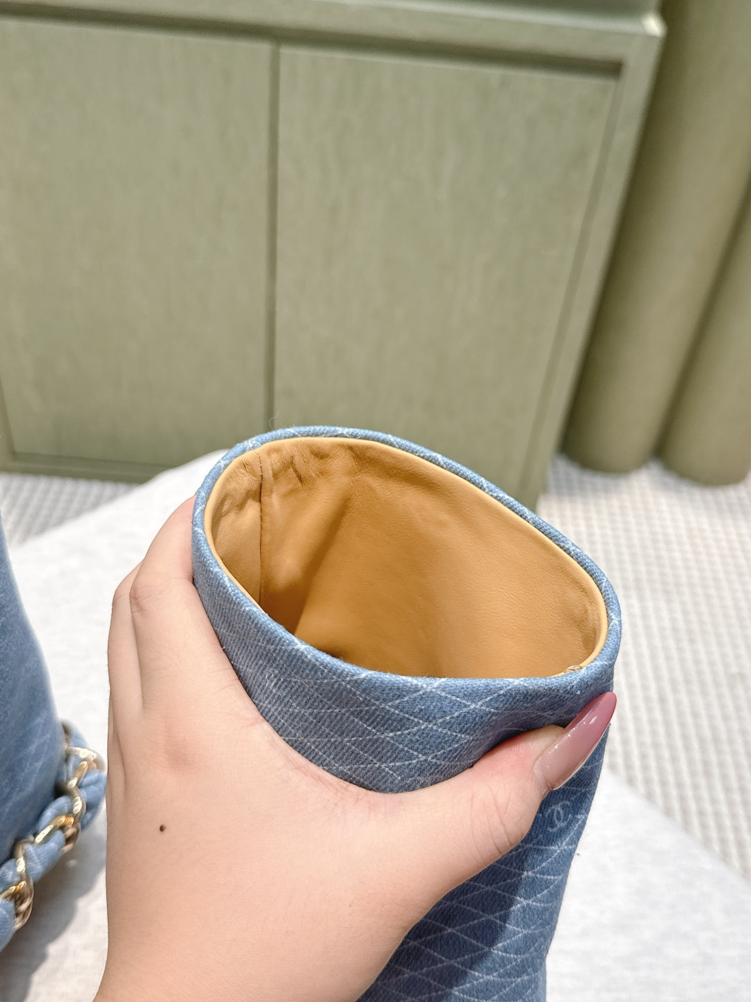 CC 25 Short Boot Blue Black Denim Fabric Calfskin 515265