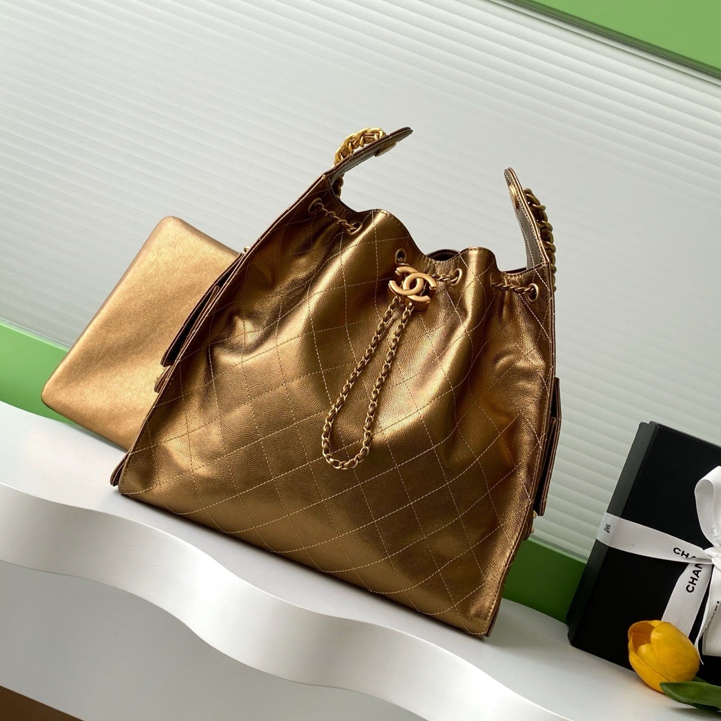 CC 25C Hobo Bags 40cm Bronze Metalic Grained Calfskin