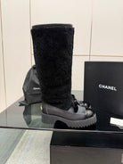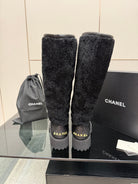 CC knee-high boots black sheepskin and wool 532192
