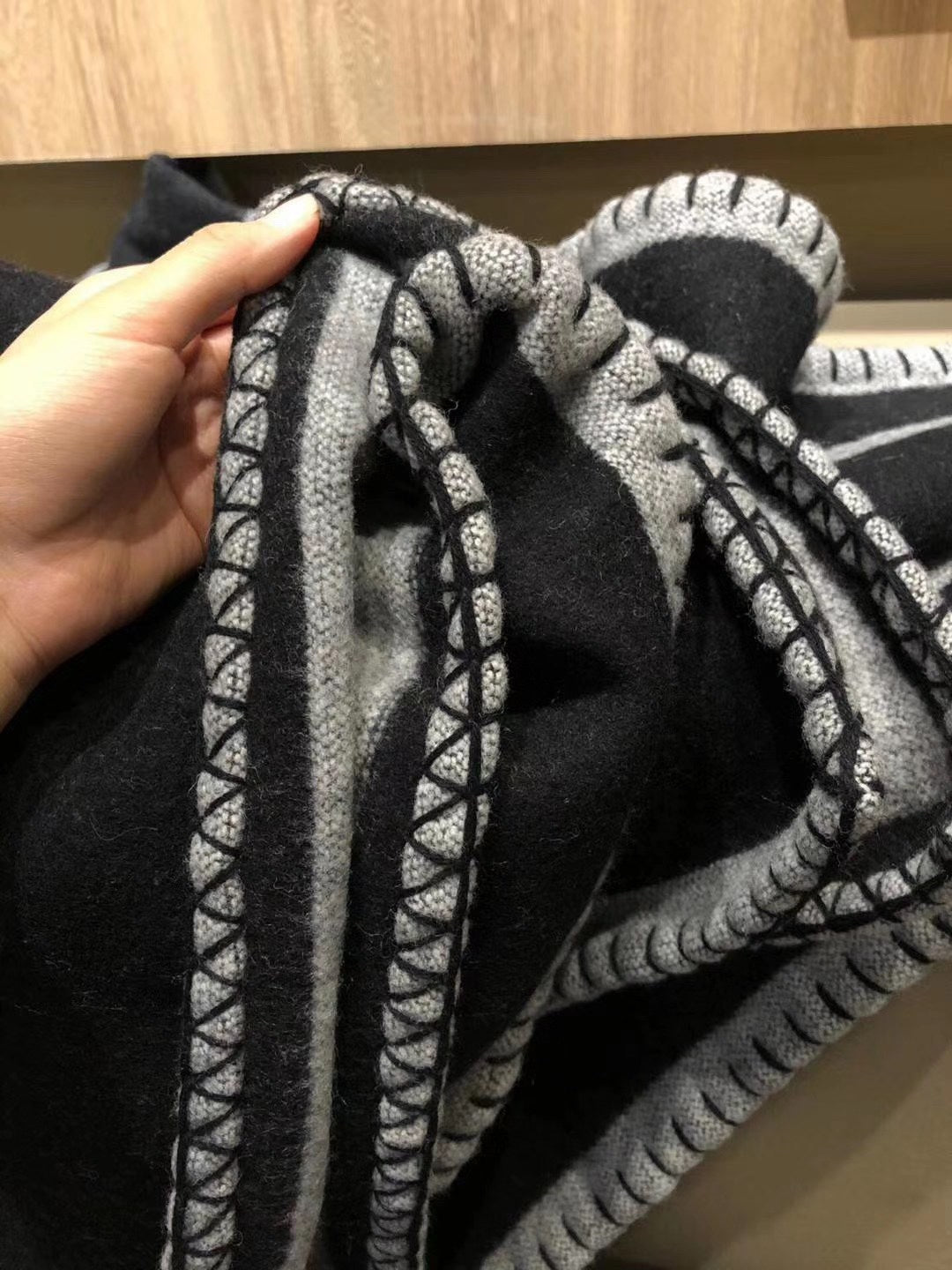CC Merino Blanket Black Grey Wool Cashmere