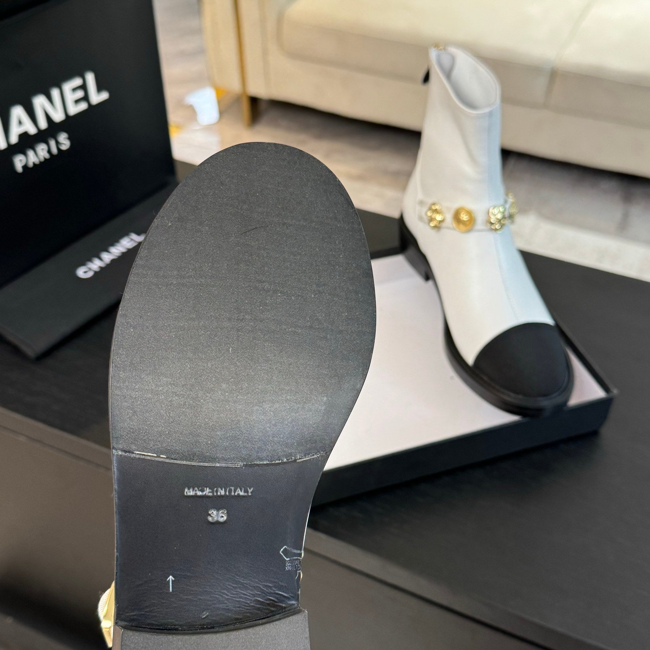 CC Short boots White Cowhide Mix Fabric Denim