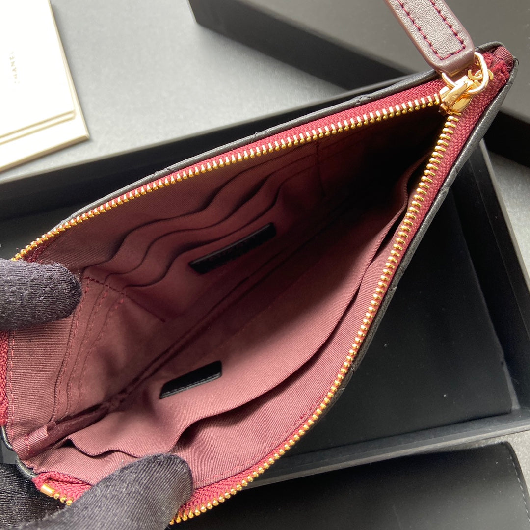 cc zipped wallet 20cm black quilted calfskin gold hardware