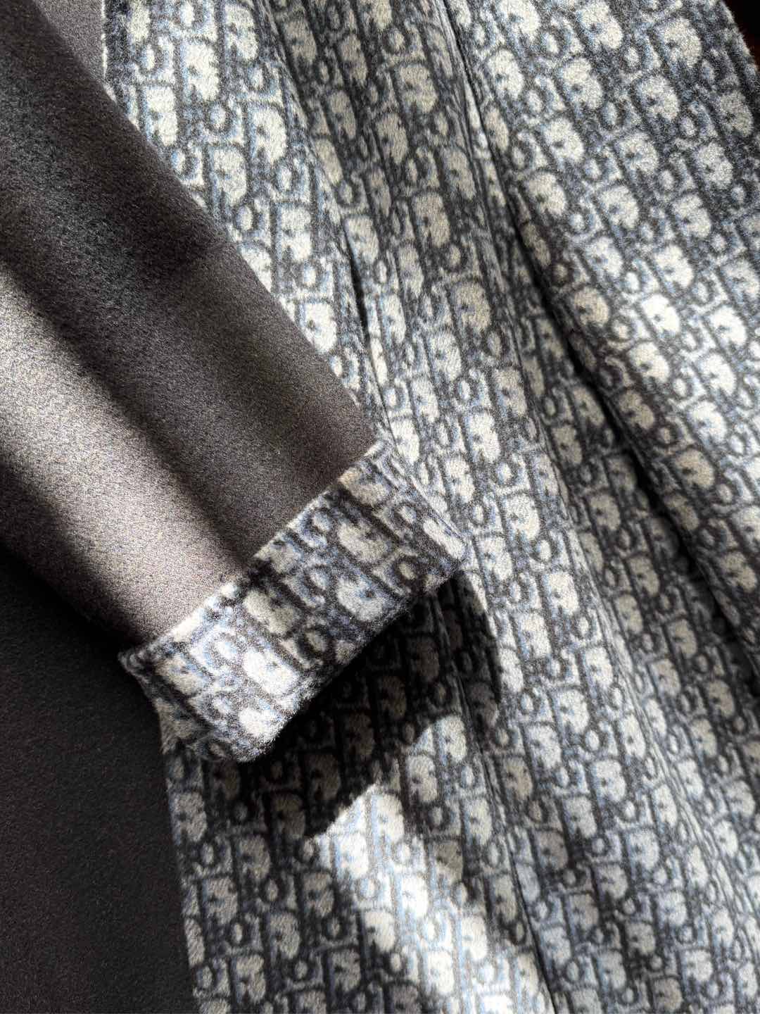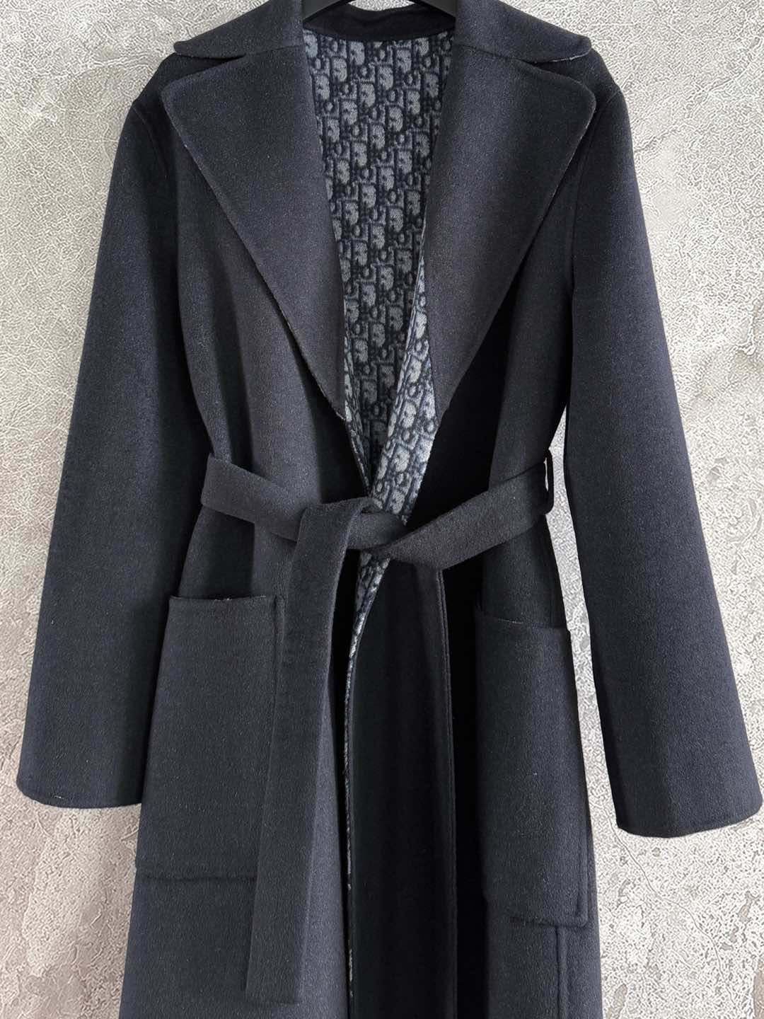 CD Hooded Long Coat Black Wool Silk