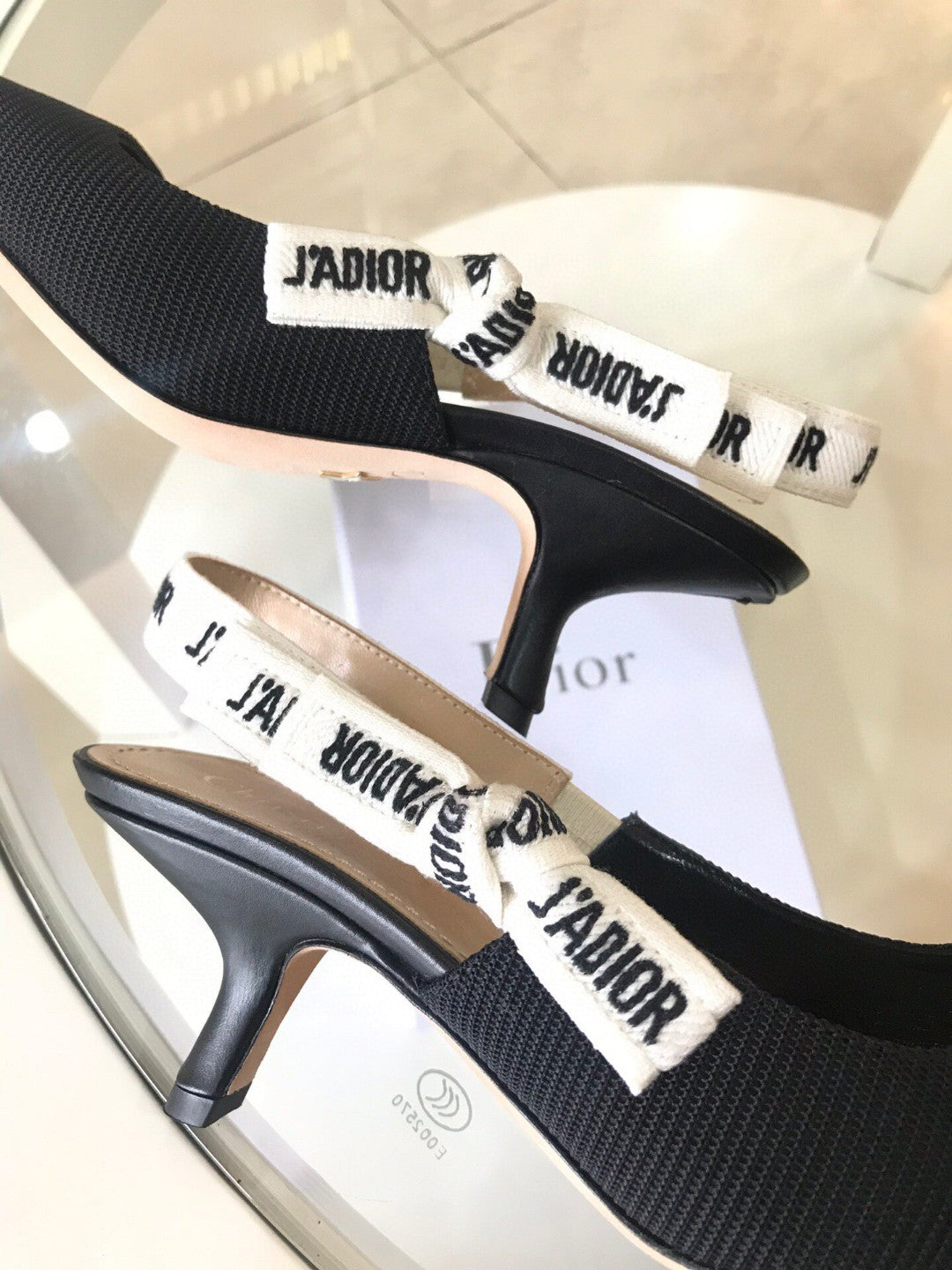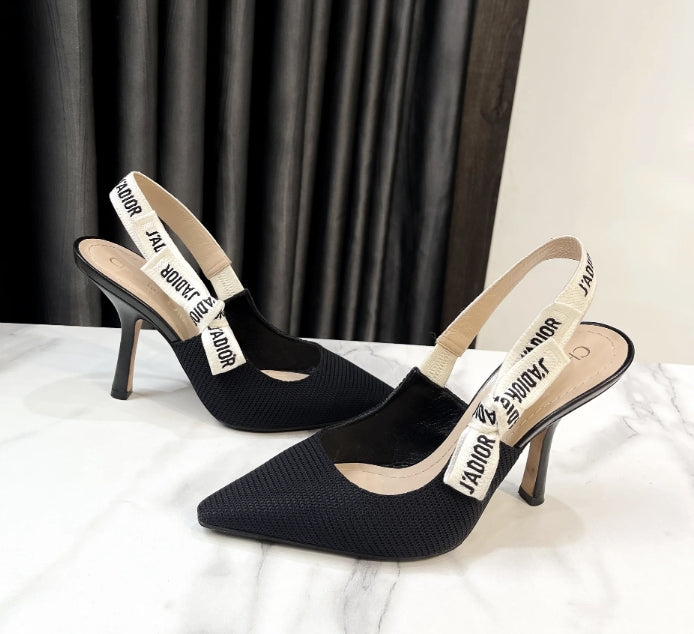 CD Slingback Pump Black Technical Fabric Beige Calfskin
