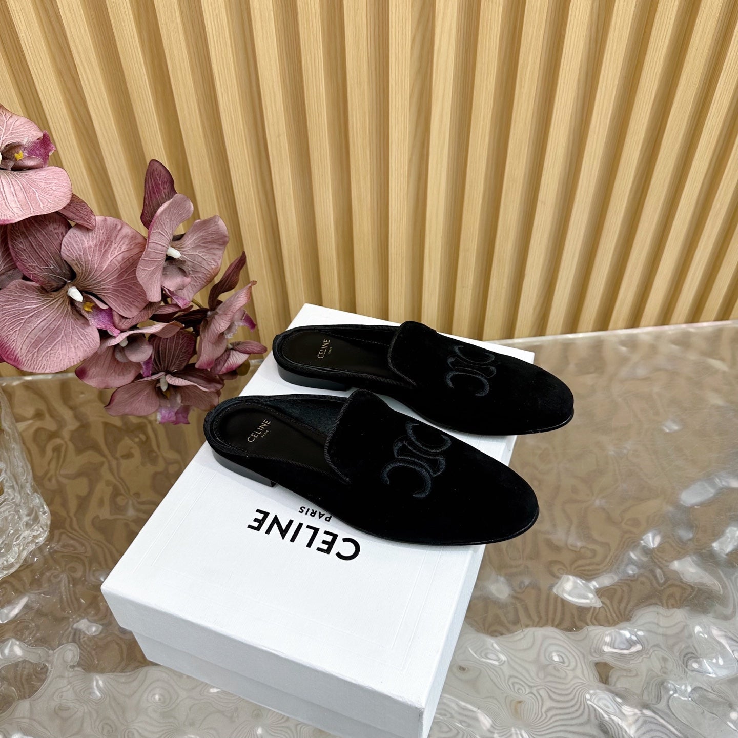 CELINE 25 Slippers Black Velvet 285914