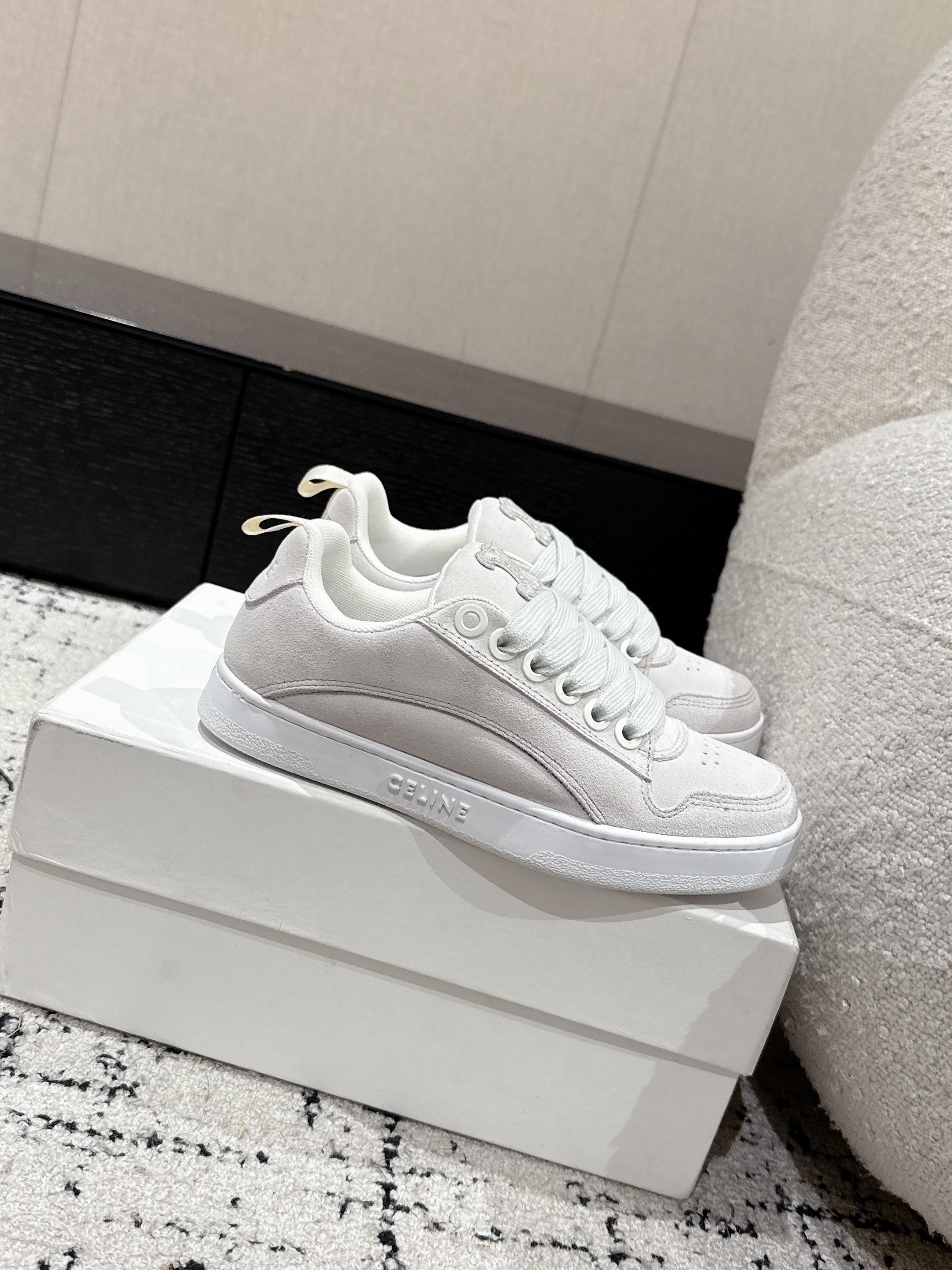 CELINE 25C Huntington Low Top Sneaker White Suede 232344