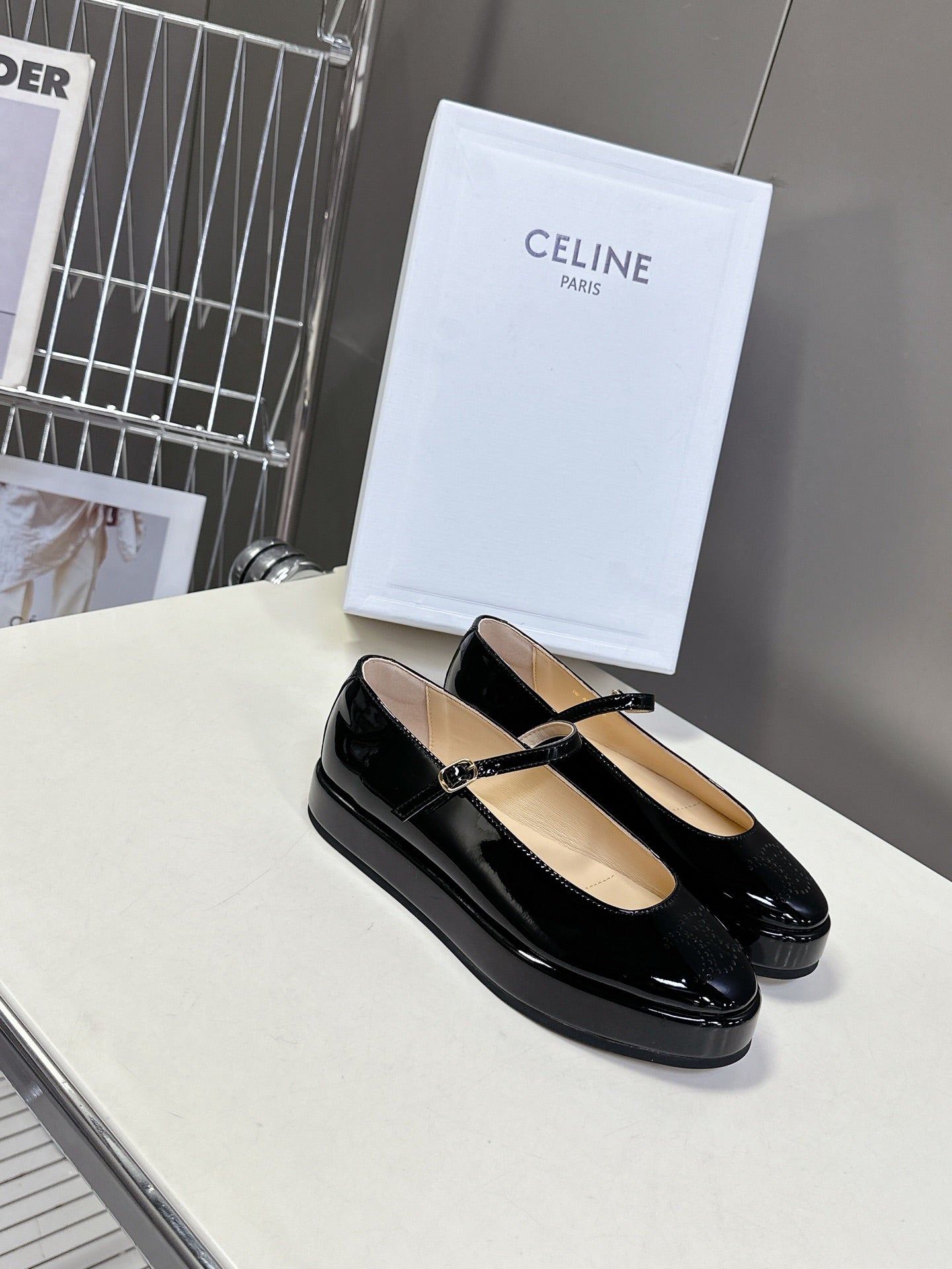 CELINE Ballet Flats Black Patent Leather 285931