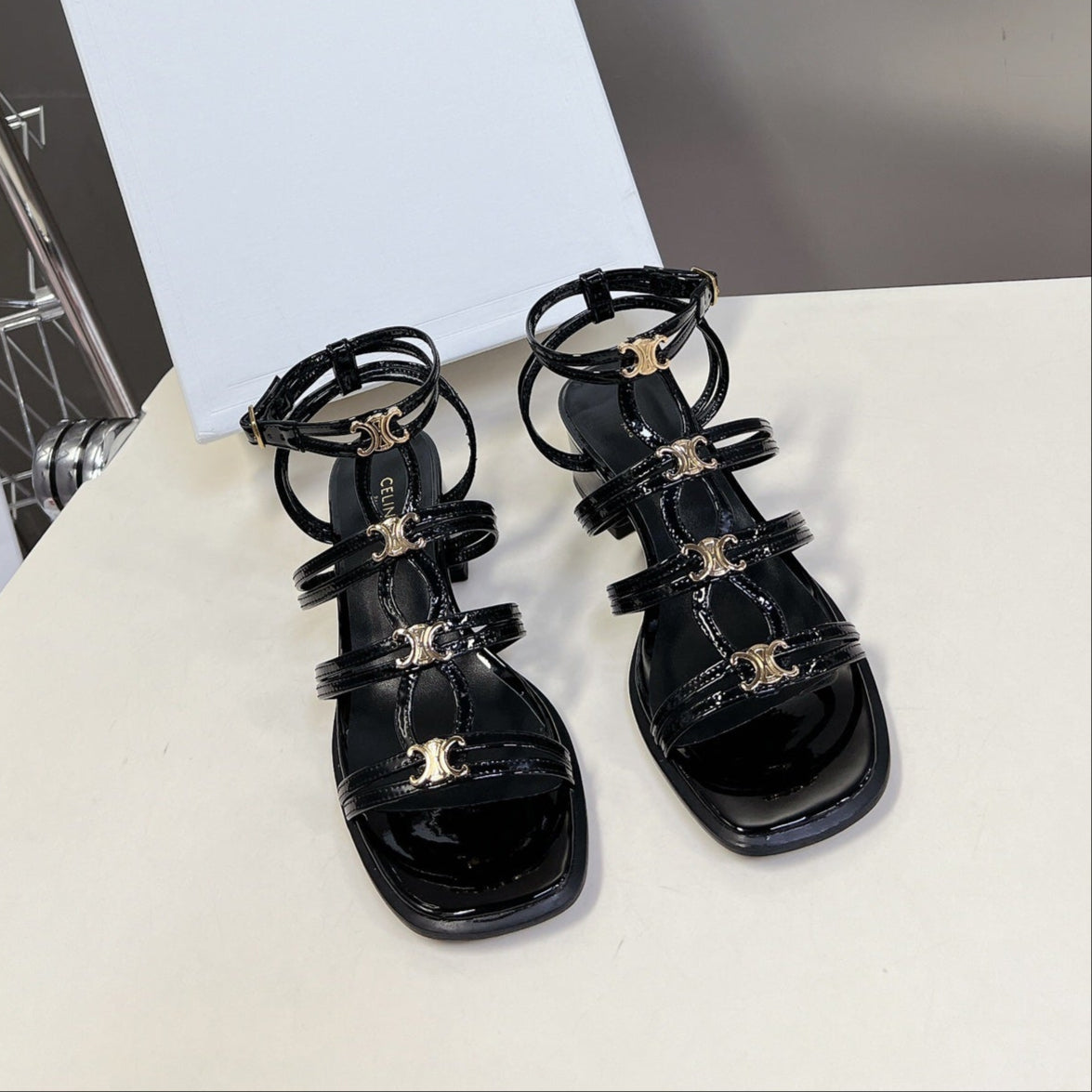 CELINE Sandals Clemence Multi Black Leather