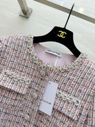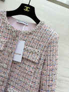 Chanel 2025 Rhinestone Chain Jacket Pink Woven Tweed Fabric 319510