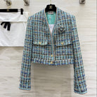 Chanel 2025 V-Neck Coat Blue Green Wool Tweed Fabric 319506