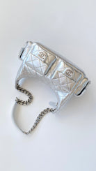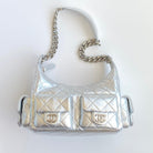 Chanel 25 Large Cargo Hobo Bag Silver Lambskin