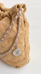 Chanel 25 Quilted Studded Bag Beige Suede