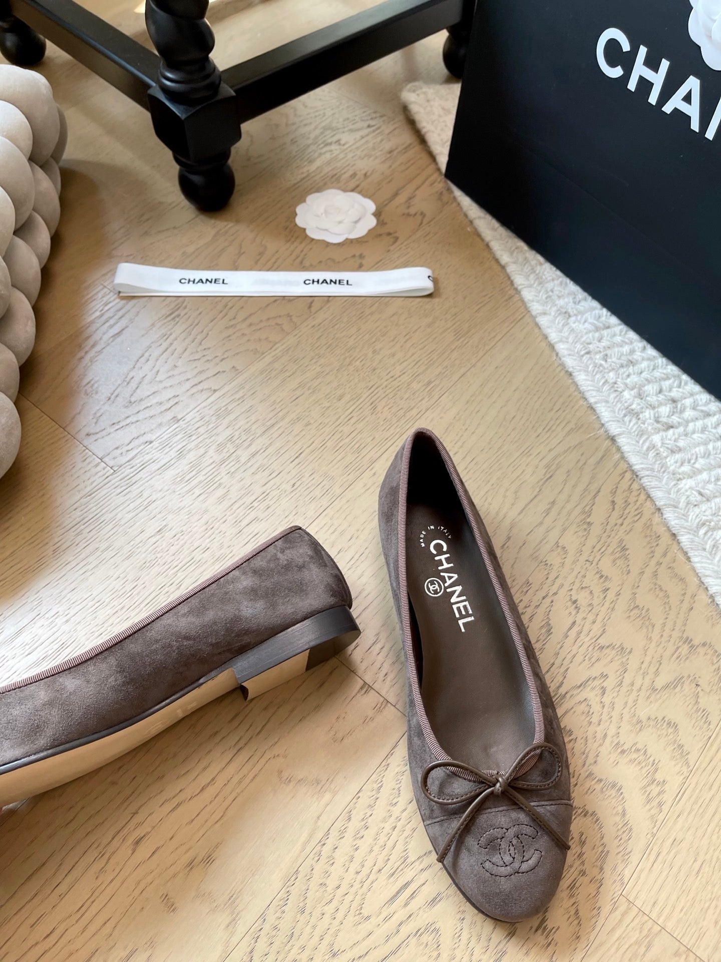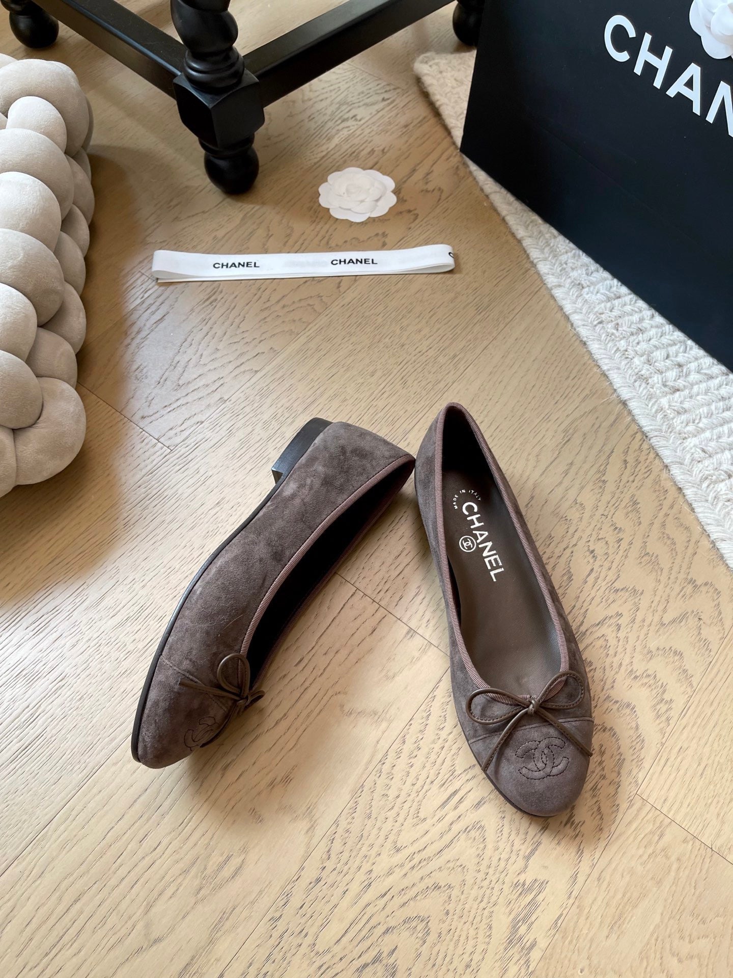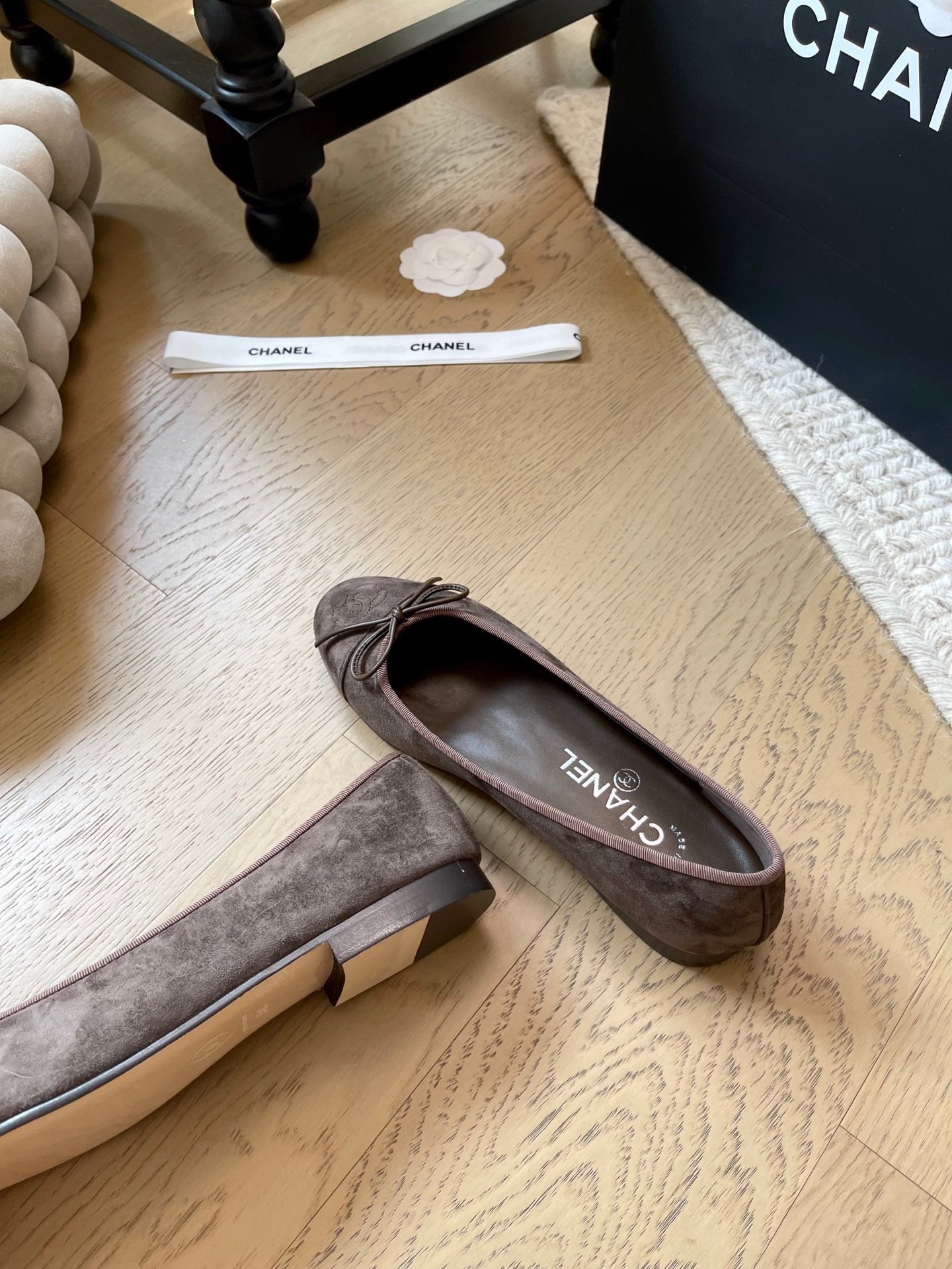 Chanel Ballet Flat Dark Brown Suede