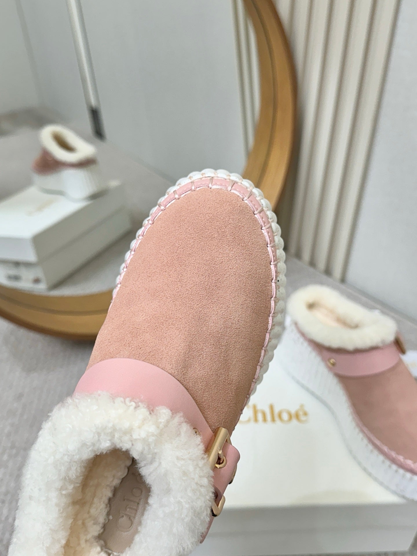 Chloe Nama Shearling-Lined Mule Pink Suede 528075