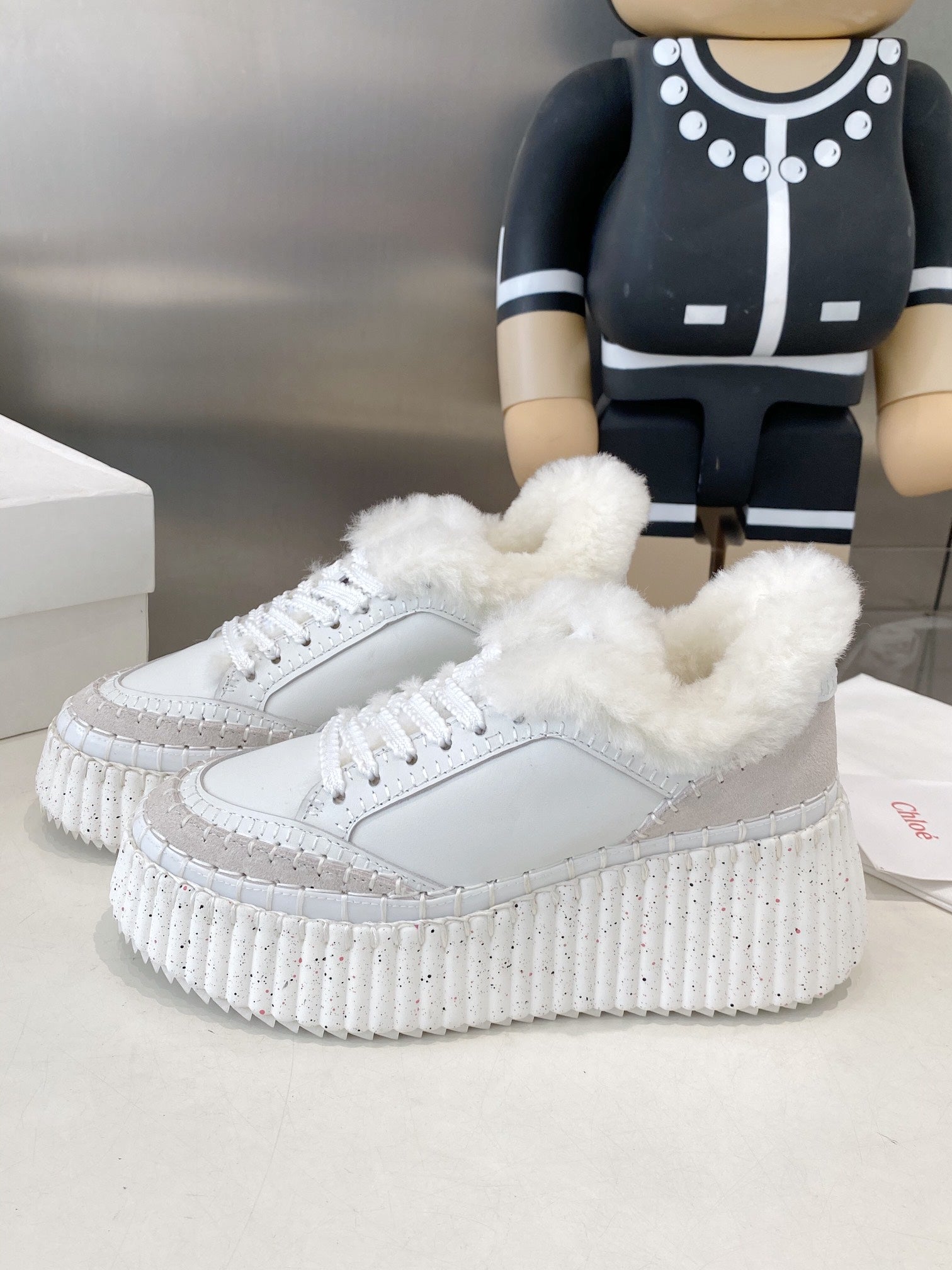 Chloe Nama Sneaker White Cowhide Wool 531607