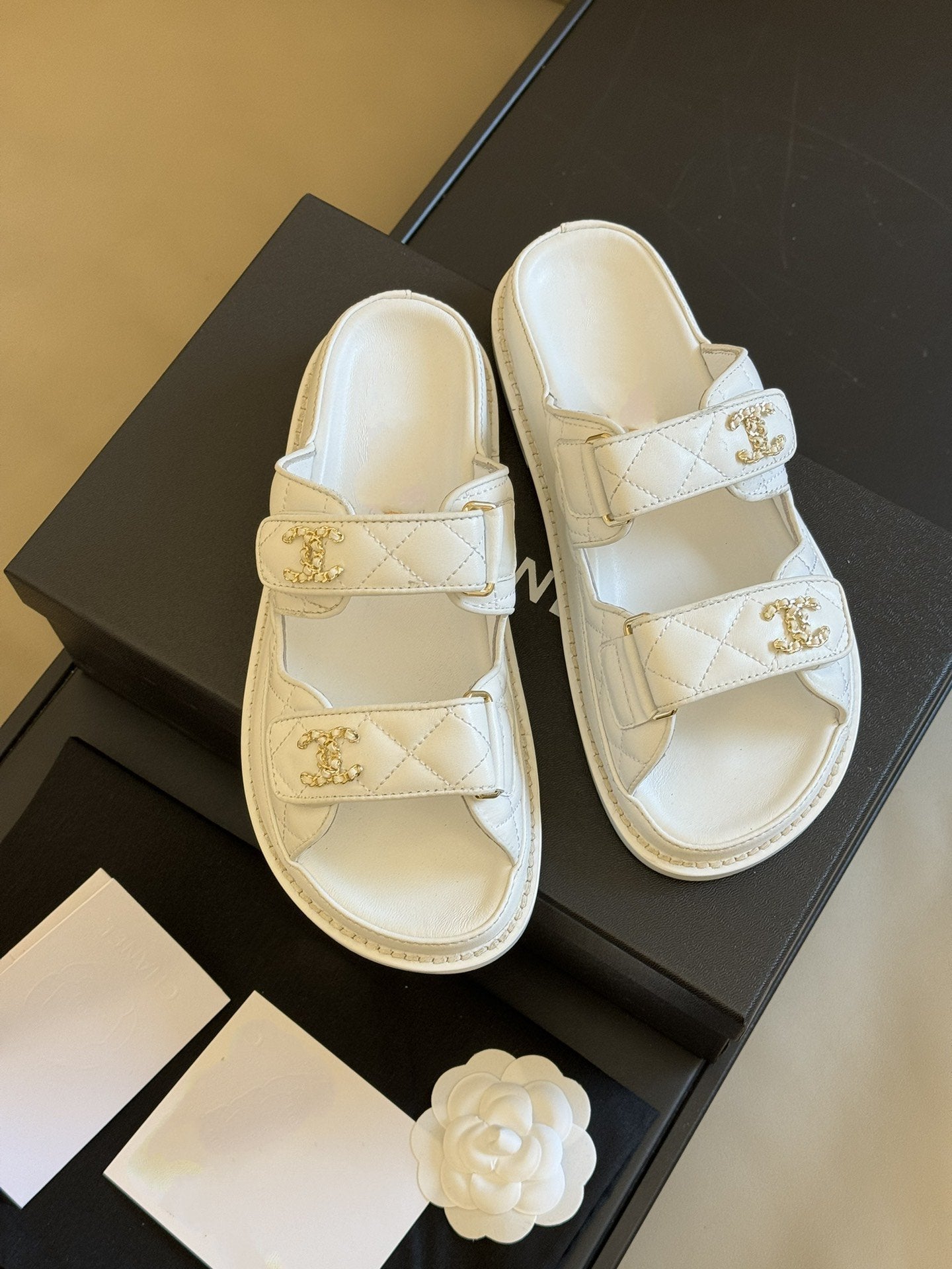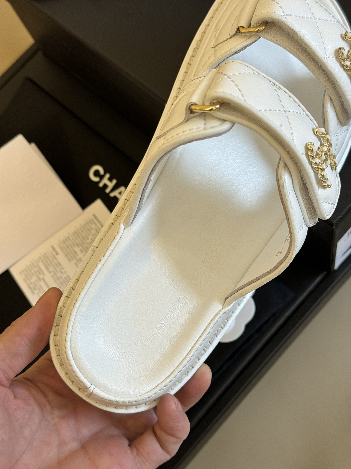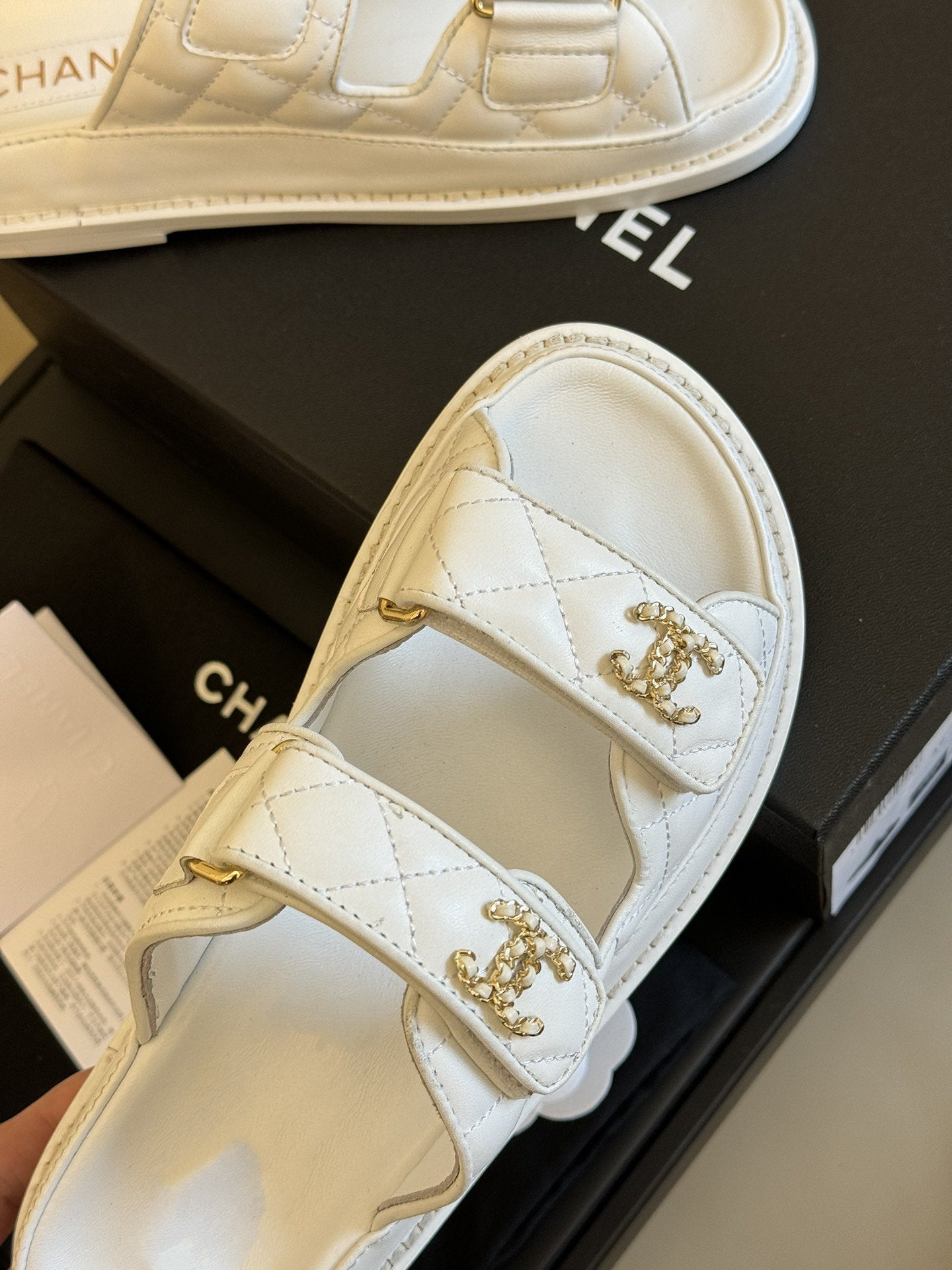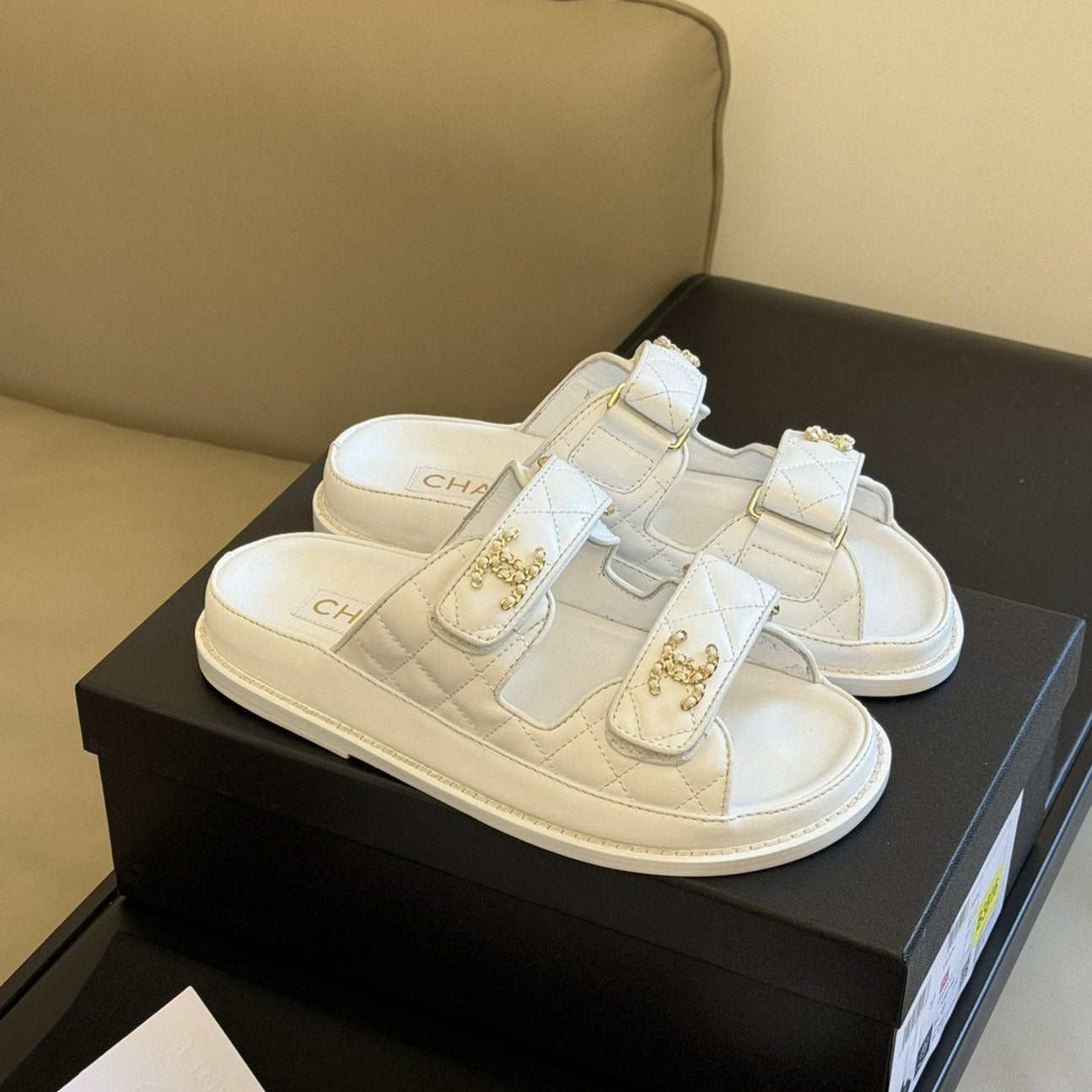 dad sandal white quilted lambskin