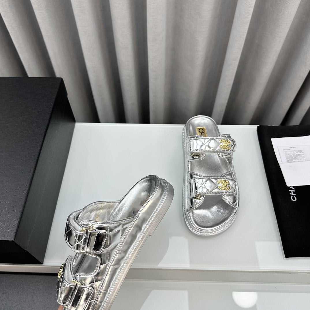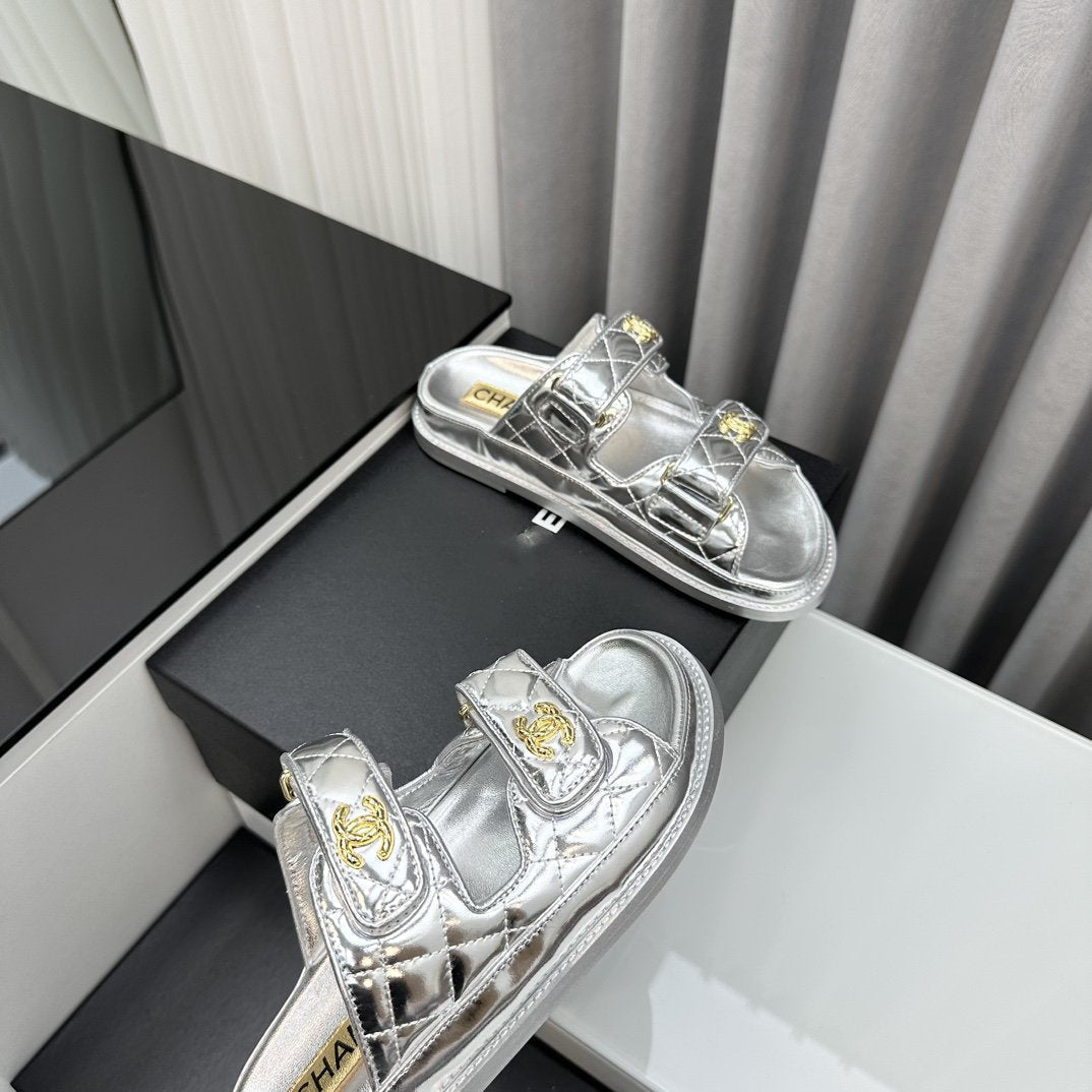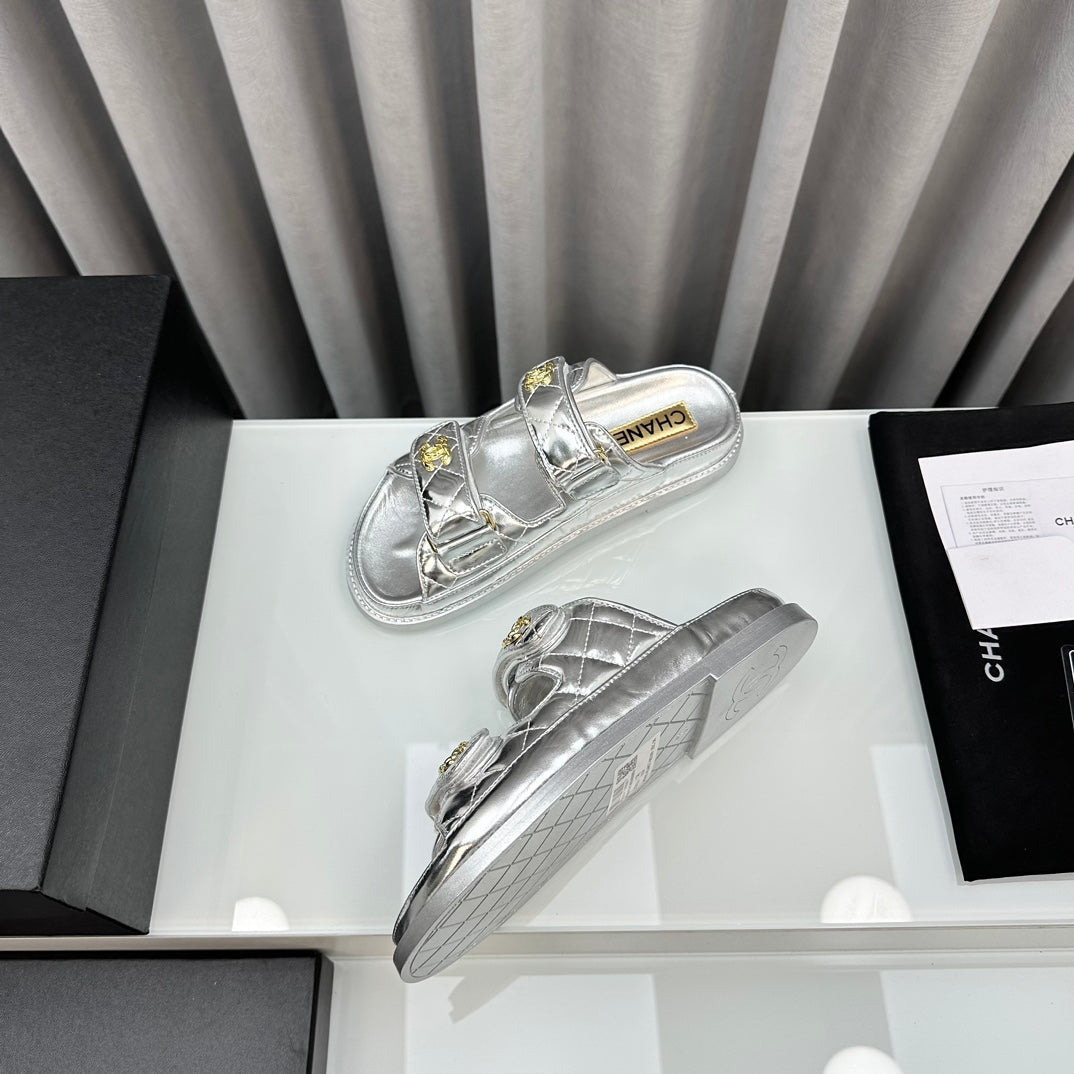 dad sandals silver metalic lambskin mules