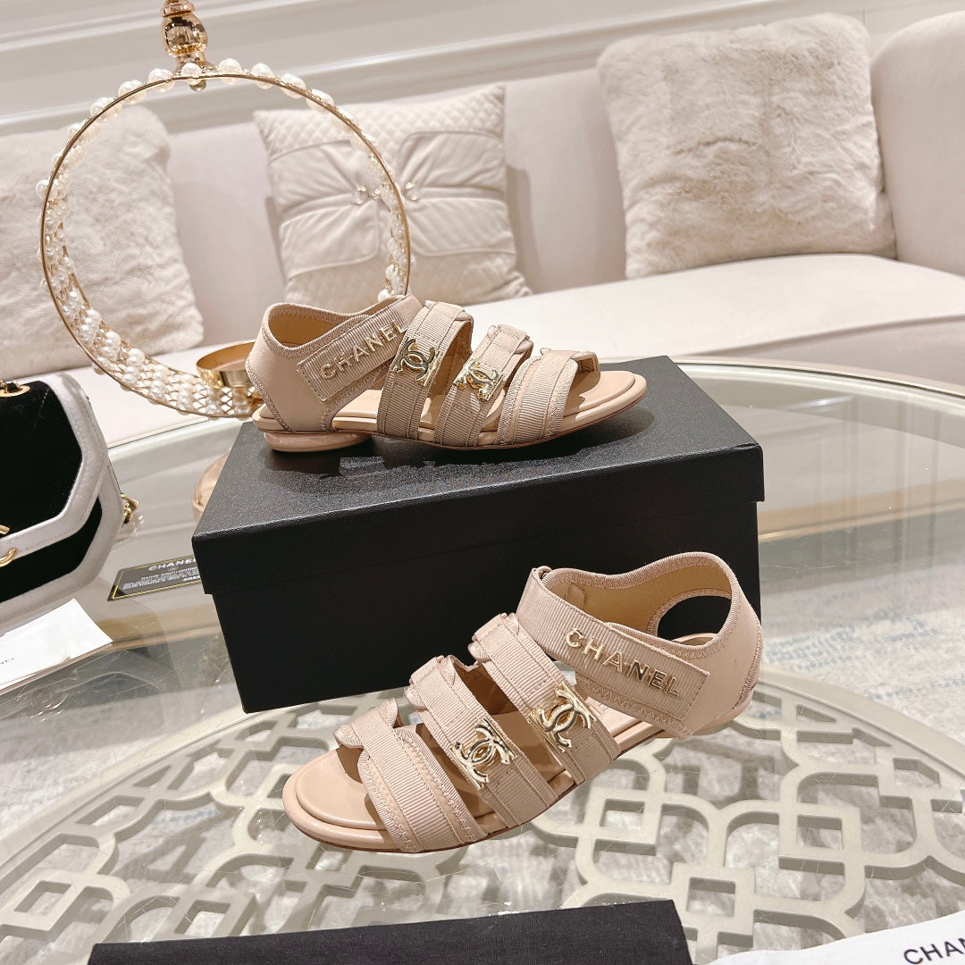 cc slingback sandal tripe strap beige canvas calfskin