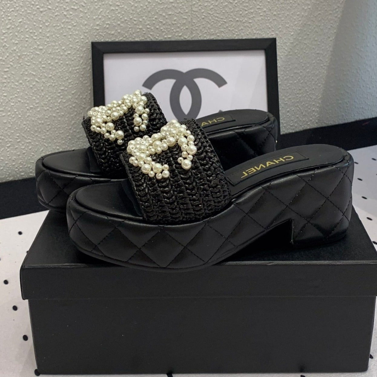 - Material: Original custom imported PP straw + pearl upper Sheepskin lining and insole