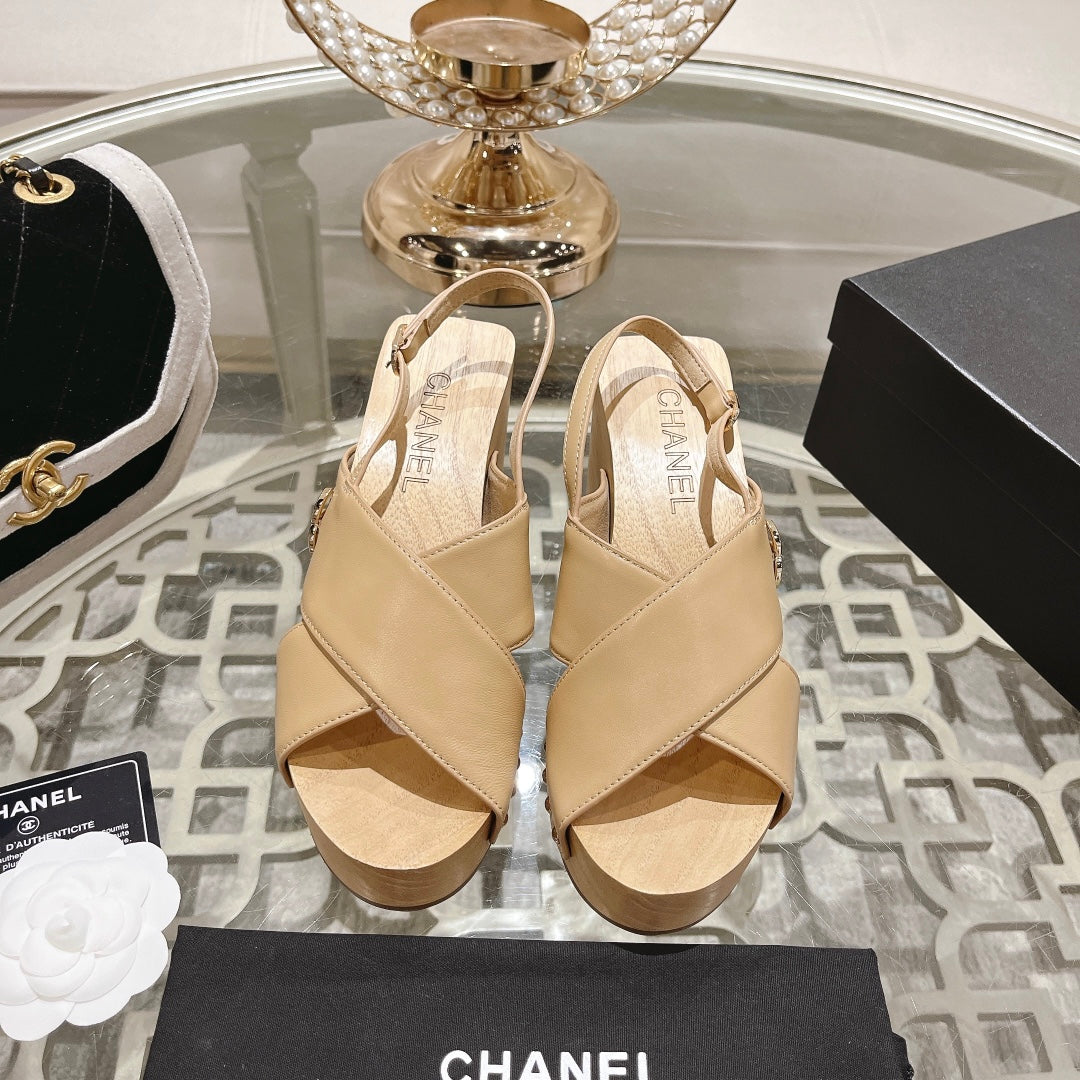 platform sandal 90 cross beige calfskin